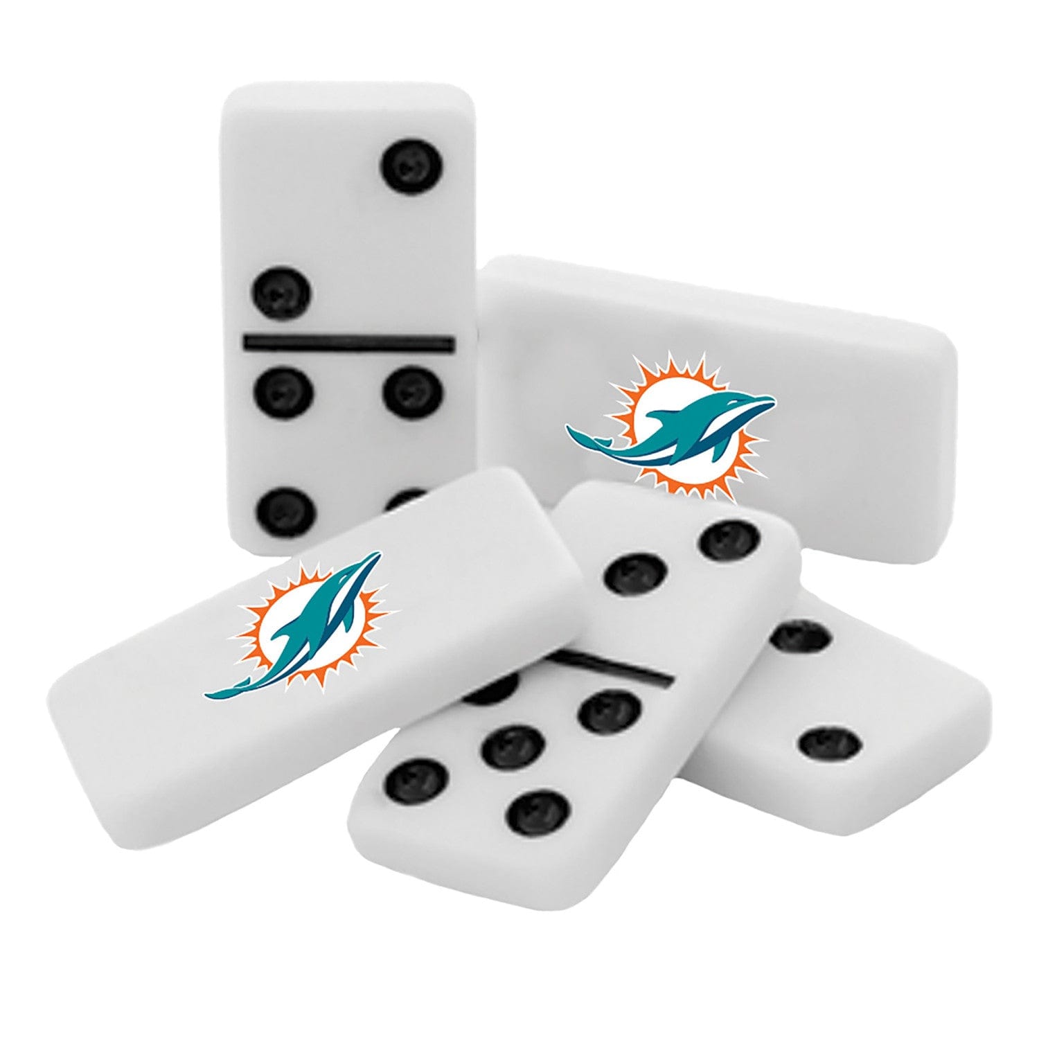 Officially licensed, MasterPieces NFL Miami Dolphins dominoes are perfect for any sports fan! This Double-Sixes Miami Dolphins Dominoes Set comes in a collectible tin box and includes 28 resin dominoes with a team logo printed on the back of each one. Dominoes Instructions are also included. This Sports Dominoes Set is perfect for all sports fans, ages 6 and up! Bring a little bit of pride home with you by purchasing this unique Dominoes Set!