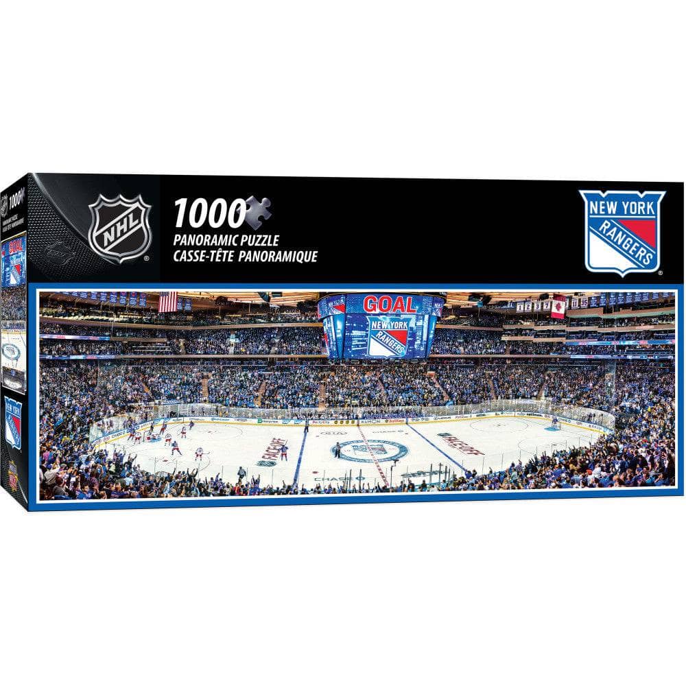 This MasterPieces NHL 1000pc 13" x 39" Panoramic New York Rangers Puzzle features the view from the sky box seat of the NY Rangers rink with such incredible detail that it's common for you to find yourself as part of the photograph! To reduce its impact on our environment, the chipboard used in this puzzle is made of 100% recycled material.