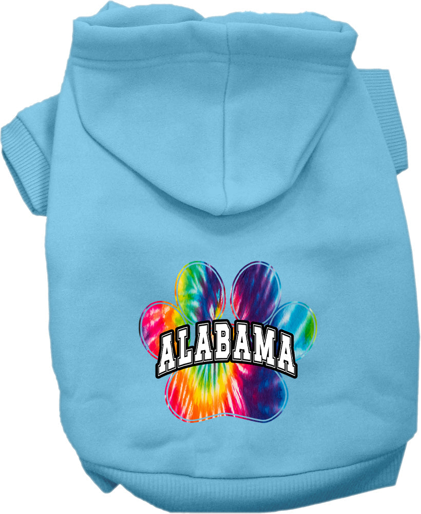 Pet Dog & Cat Screen Printed Hoodie for Small to Medium Pets (Sizes XS-XL), "Alabama Bright Tie Dye"