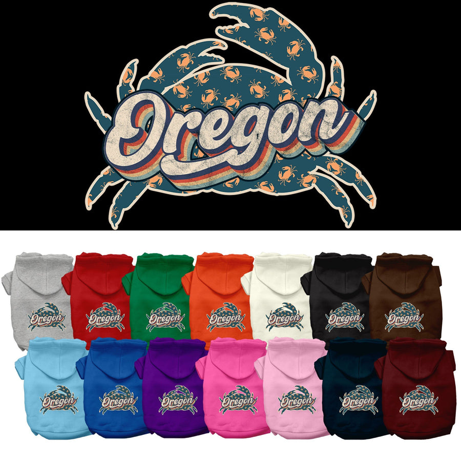 Pet Dog & Cat Screen Printed Hoodie for Small to Medium Pets (Sizes XS-XL), "Oregon Retro Crabs"