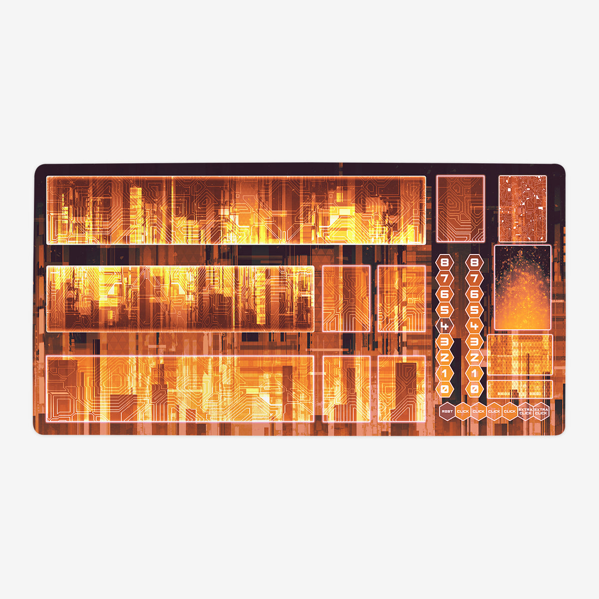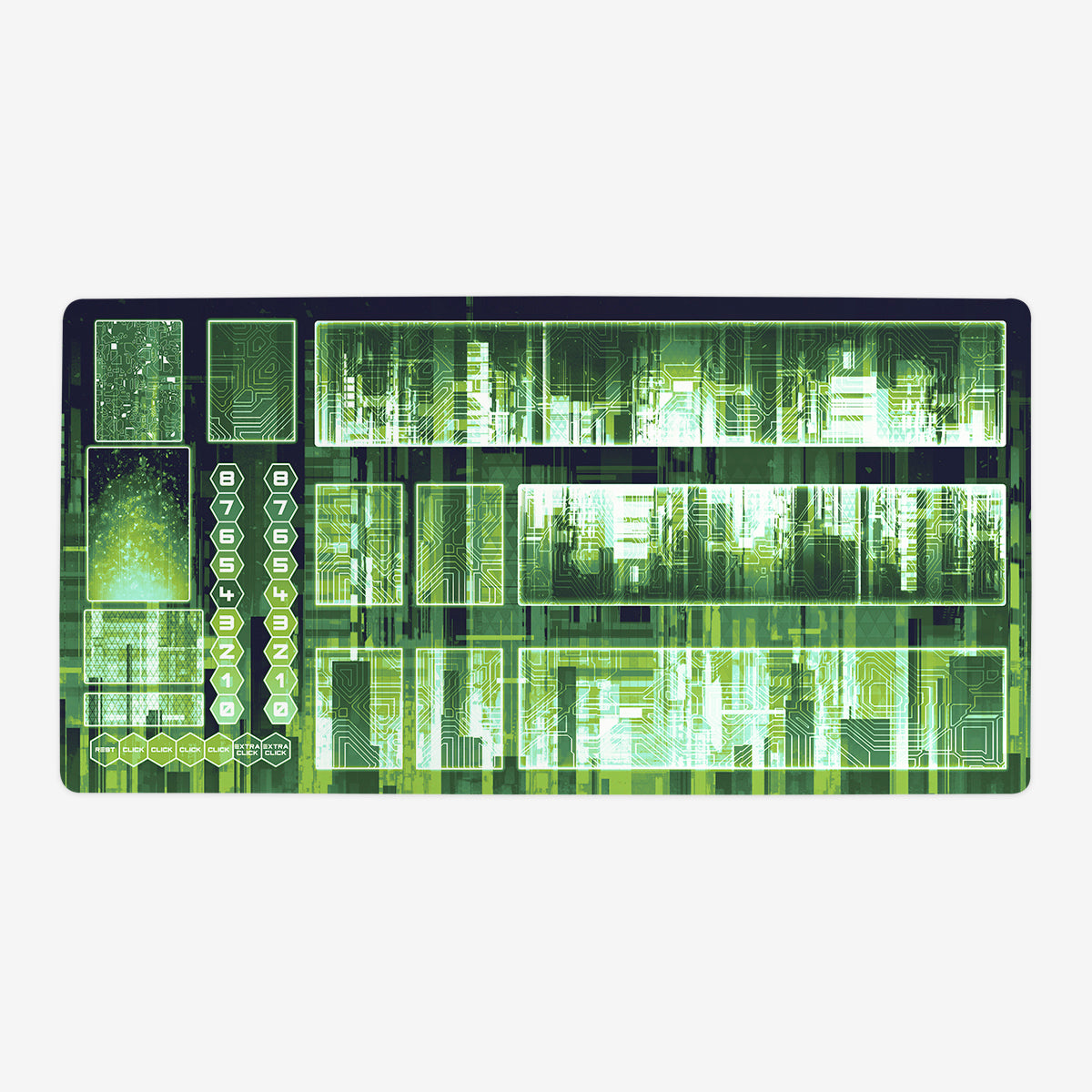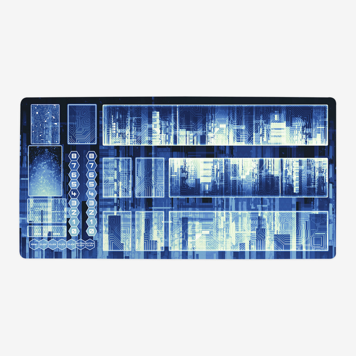 Oversized Playmat measures at 28” x 14” inches and is 1/16 of an inch thick. It’s made with a smooth cloth top and strong rubber backing.