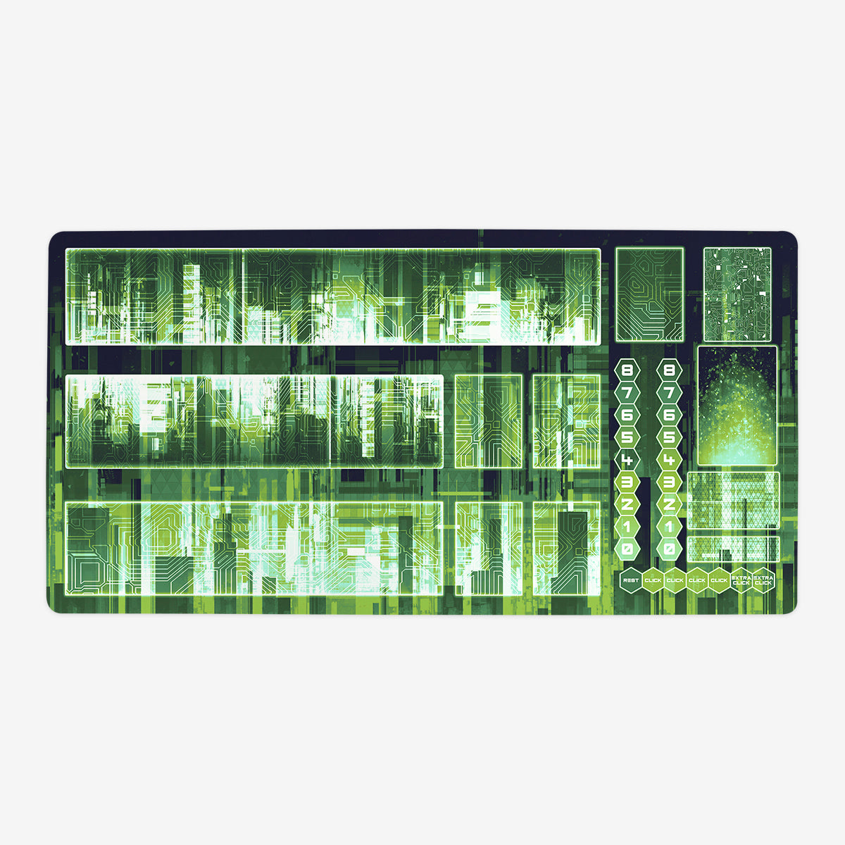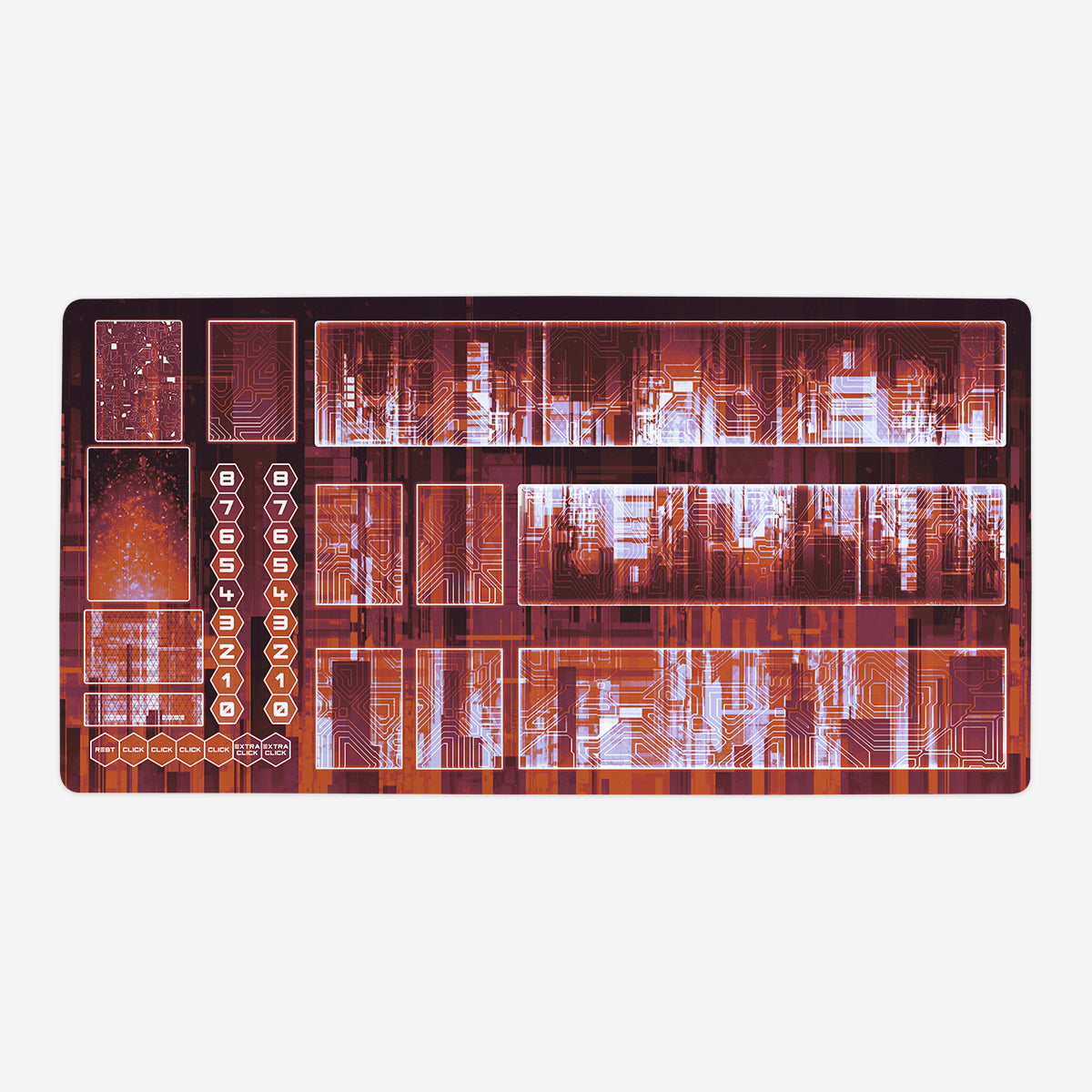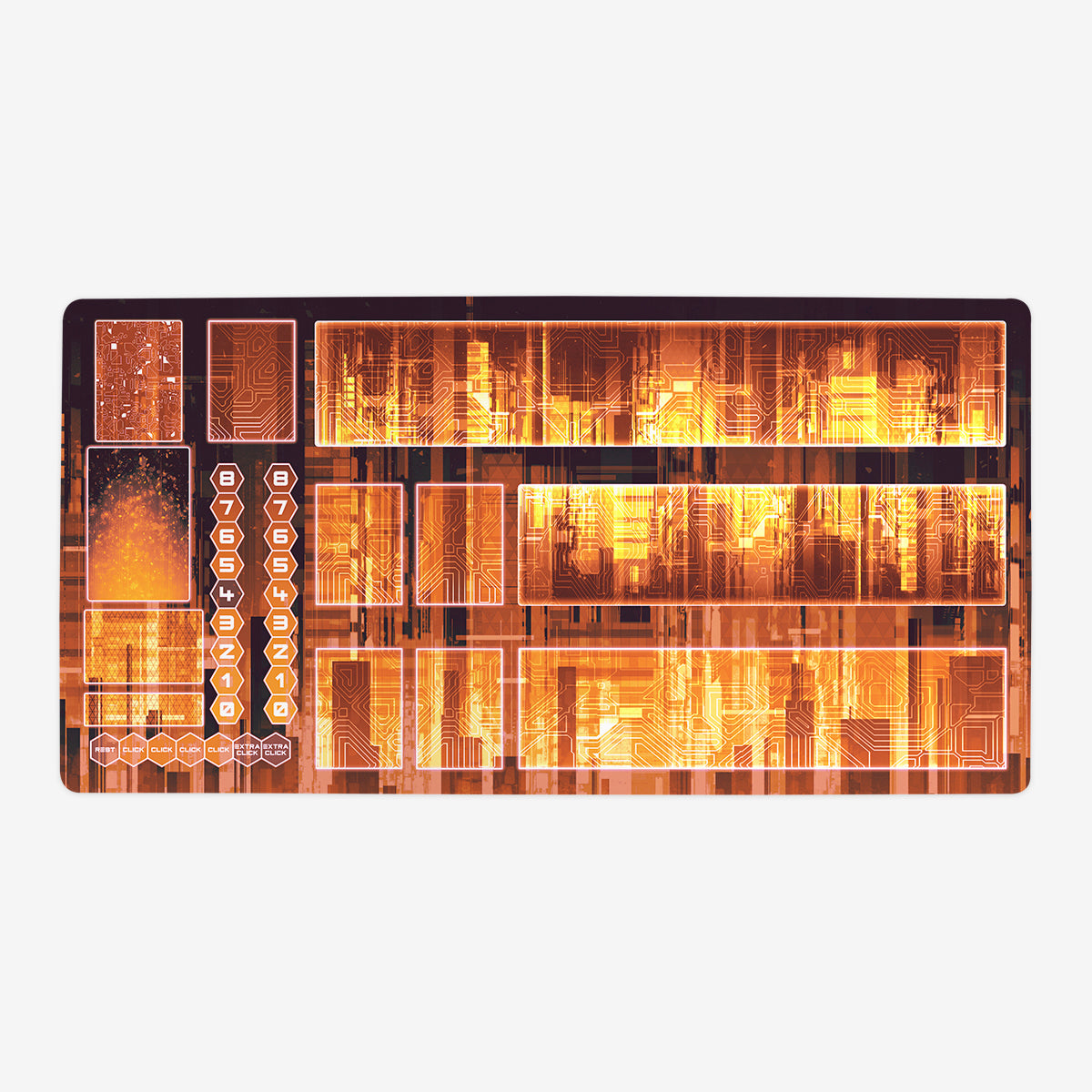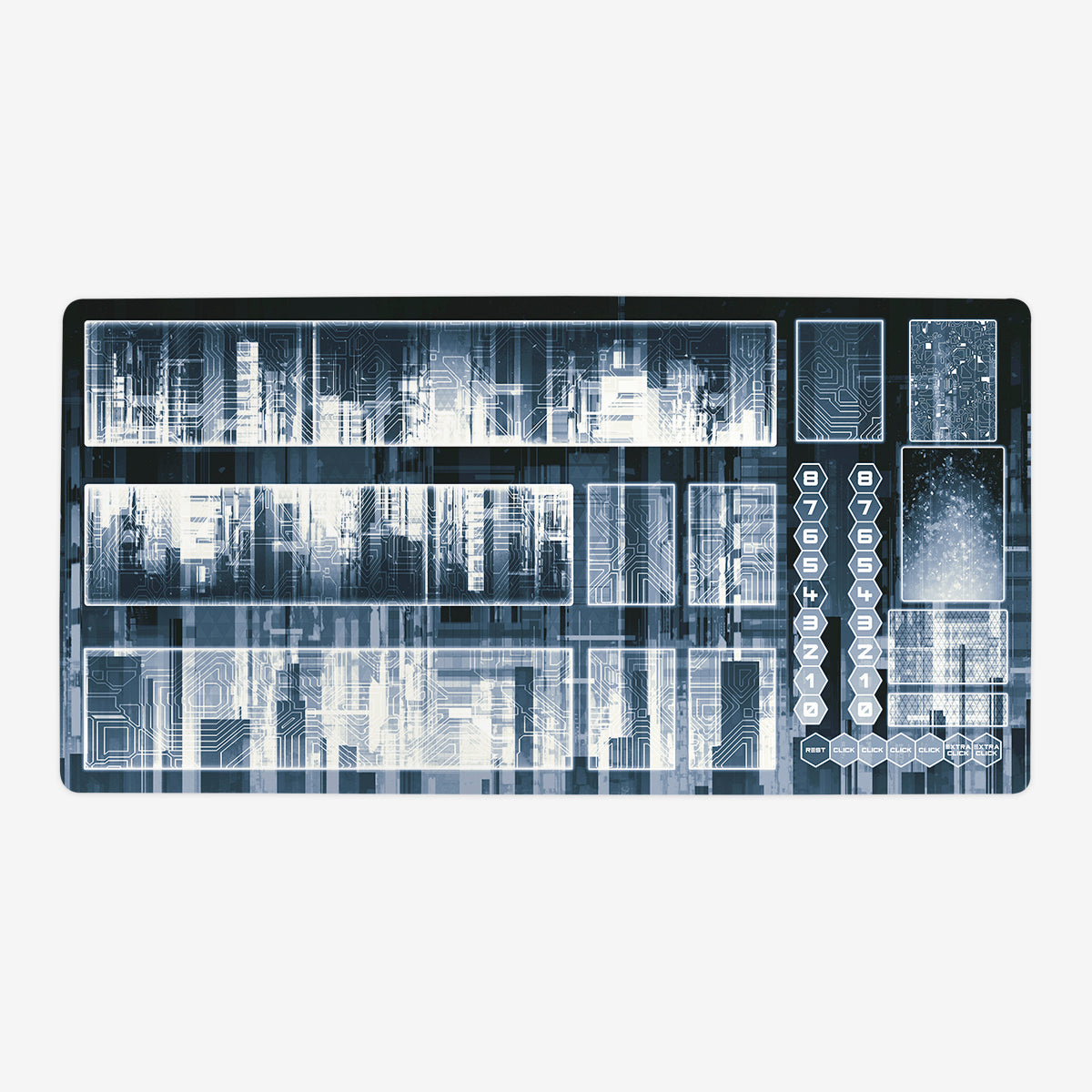 Oversized Playmat measures at 28” x 14” inches and is 1/16 of an inch thick. It’s made with a smooth cloth top and strong rubber backing.