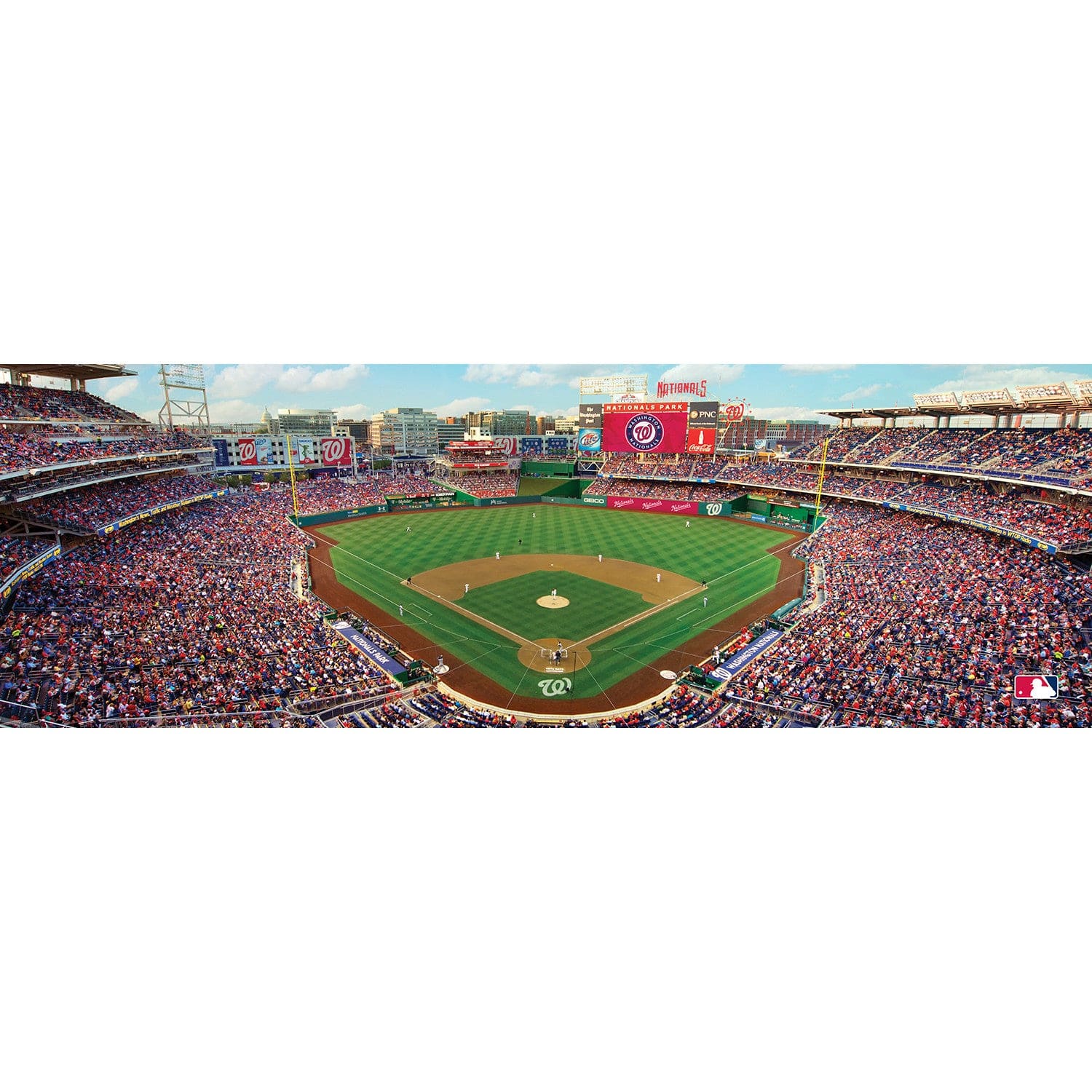 This MasterPieces MLB 1000pc 13" x 39" Panoramic Washington Nationals Puzzle features the view from behind home plate of the Washington Nationals' Nationals Park with such incredible detail that it's common for you to find yourself as part of the photograph! To reduce its impact on our environment, the chipboard used in this puzzle is made of 100% recycled material.