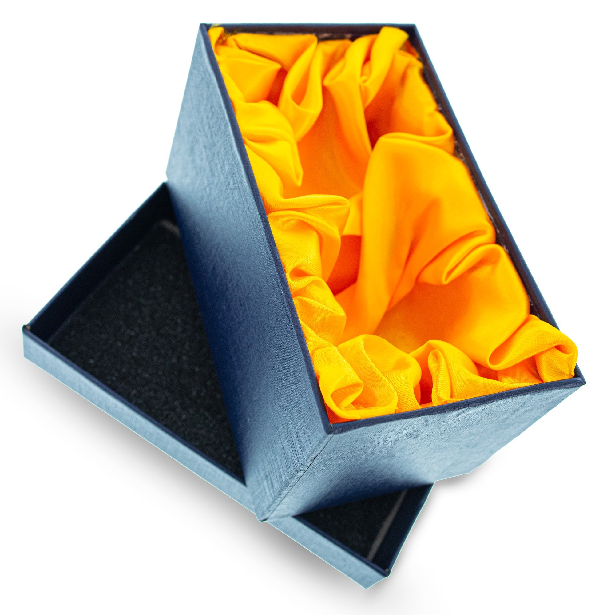 This sparkling egg is adorned with clear crystals and high-polished enamel with golden trim. It opens on a hinge and has a magnetic closure to keep the box securely shut. The piece also comes in a beautiful gift box.