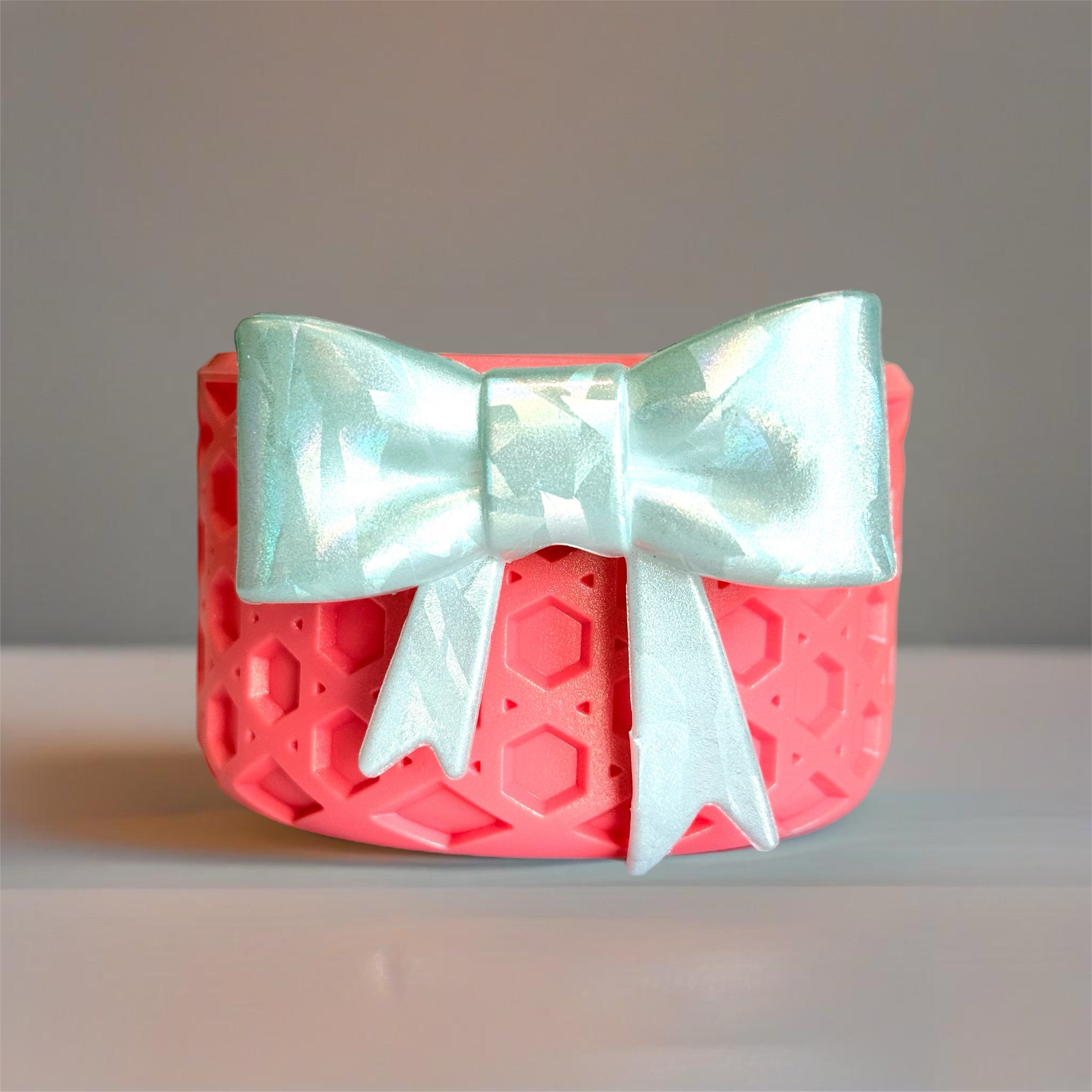 When removing the boot from the cup, gently peel it off the cup on the side opposite the bow and pull it off. Avoid pulling or peeling from the area where the bow is attached to prevent damage.