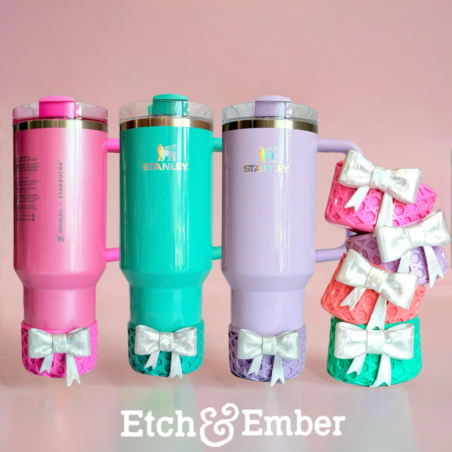 Beautiful colors and designs so you can choose the perfect silicone boot to protector you beloved tumblers. These silicone water bottle boots prevent scratches on your cup as well as the surfaces they are on. The perfect accessory to protect and personalizing your tumbler!