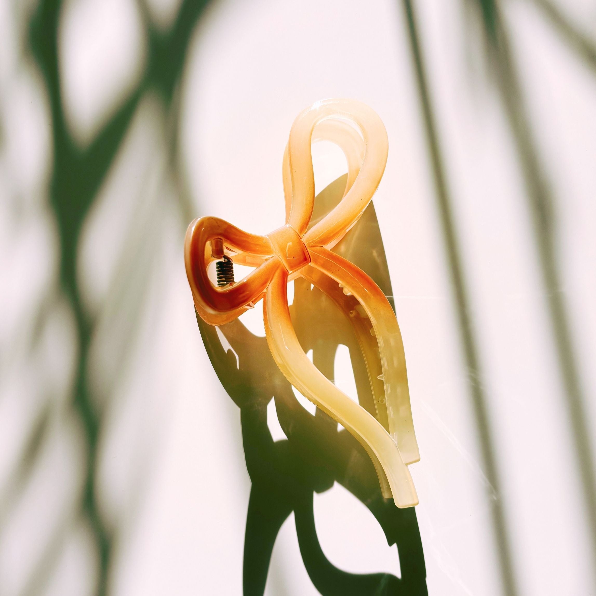 A delicate blend of elegance and charm, this bow-shaped claw clip in warm caramel latte tones adds a soft, romantic touch to any hairstyle. Designed for a secure yet lightweight hold, it comes with a luxurious velvet travel bag for effortless storage. A must-have for coquette-inspired looks!
