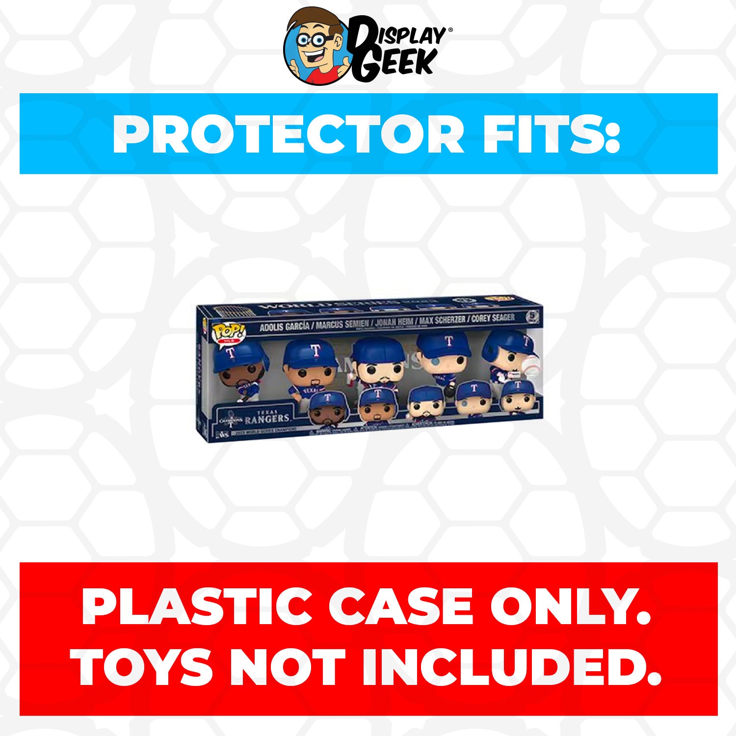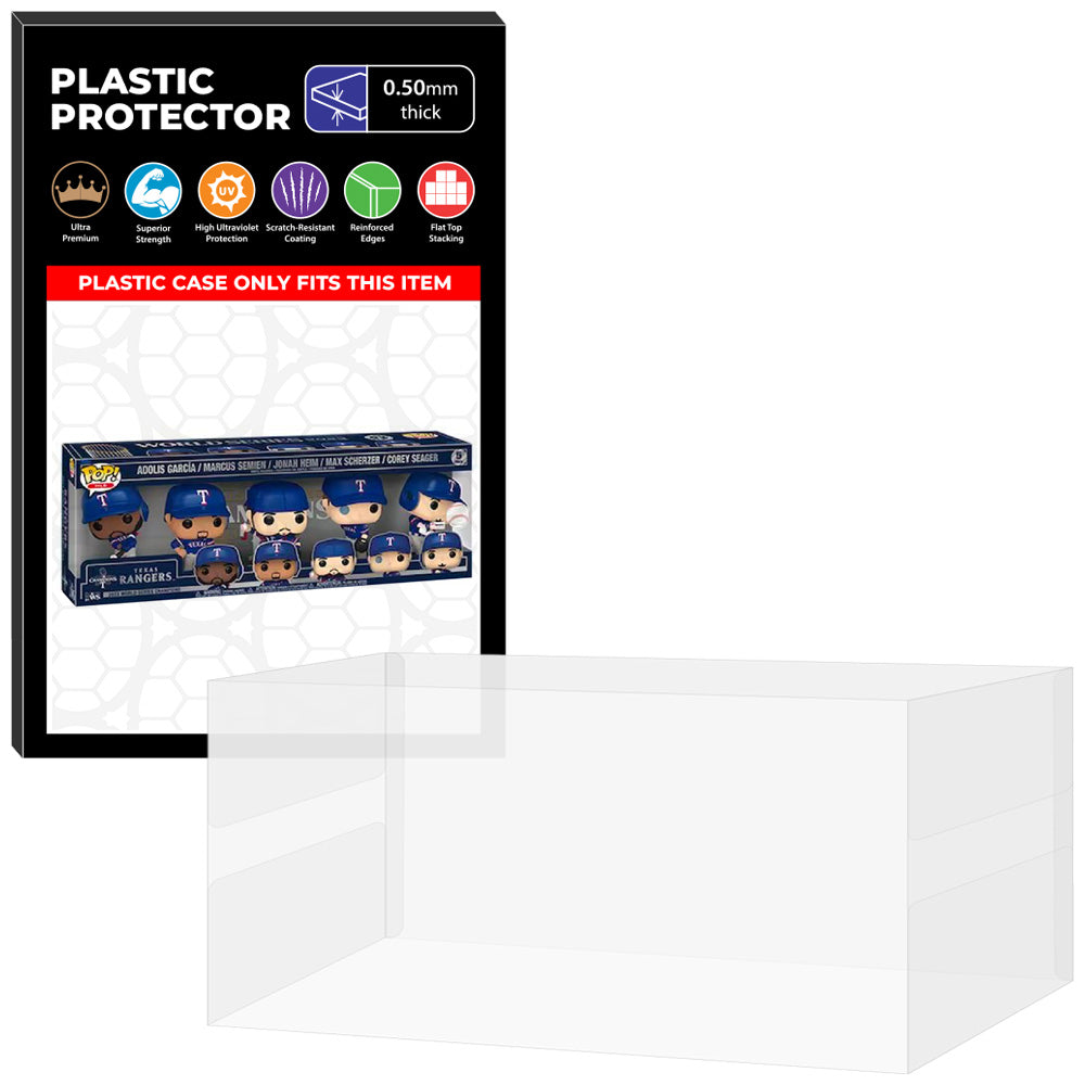 0.60mm Thick UV Resistant Plastic Pop Protector Compatible with Funko Pop Texas Rangers MLB 2023 World Series Champions with Trophy Adolis Garcia, Marcus Semien, Jonah Heim, Max Scherzer and Corey Seager 5 Pack Box (6.25h x 17.5w x 3.5d)