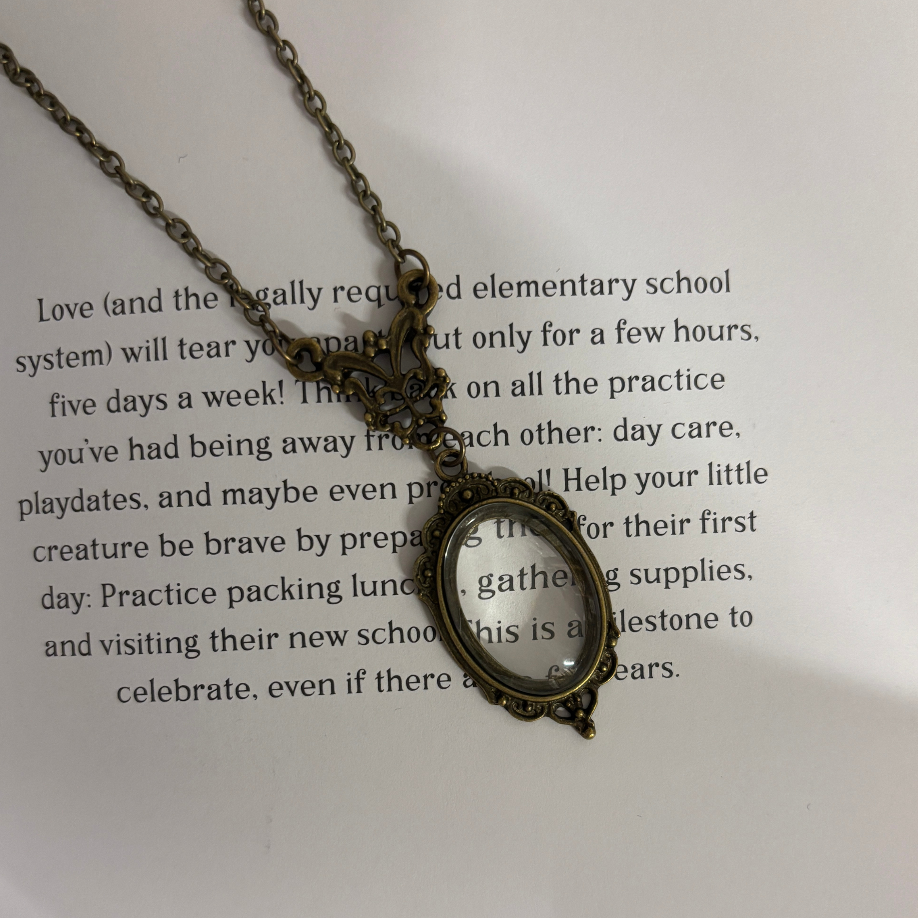 Please note, this is a functioning magnifying glass, but it cannot be used while being worn due to the short chain length.