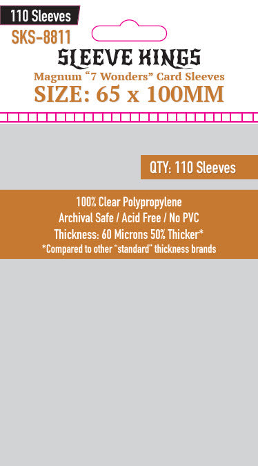 ** Note Game Titles and their intellectual property rights are © and TM of their respective rights holders, no challenge to these rights is expressed or implied. Compatibility claims only extend to the physical size of the cards in each respective game and no claim to endorsement or authorization by the respective rights holders is expressed or implied by Sleeve Kings or Imperial Publishing. Our products are compatible with the respective games only and all rights are reserved by the respective rights holders.