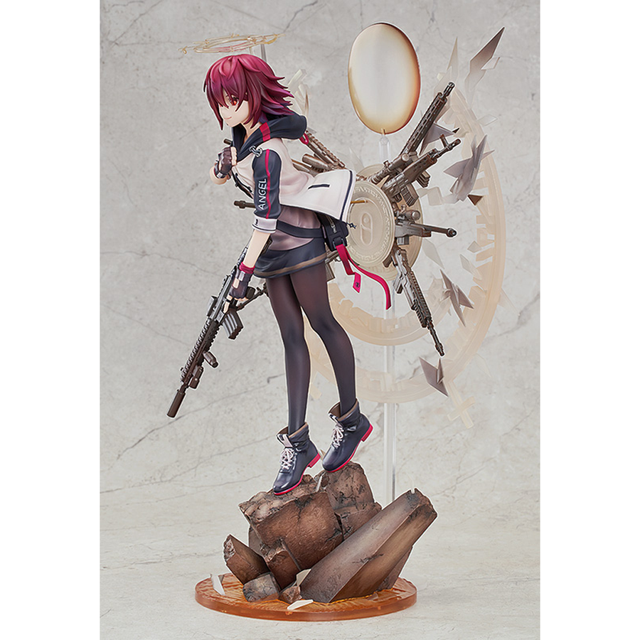 The figure is packed with details you won't want to miss, including the meticulous paintwork and texturing of her Laterano guns, the rings of light that appear behind Exusiai in the Elite 2 illustration and the figure base made to look like a pile of debris. Be sure to add her to your collection!