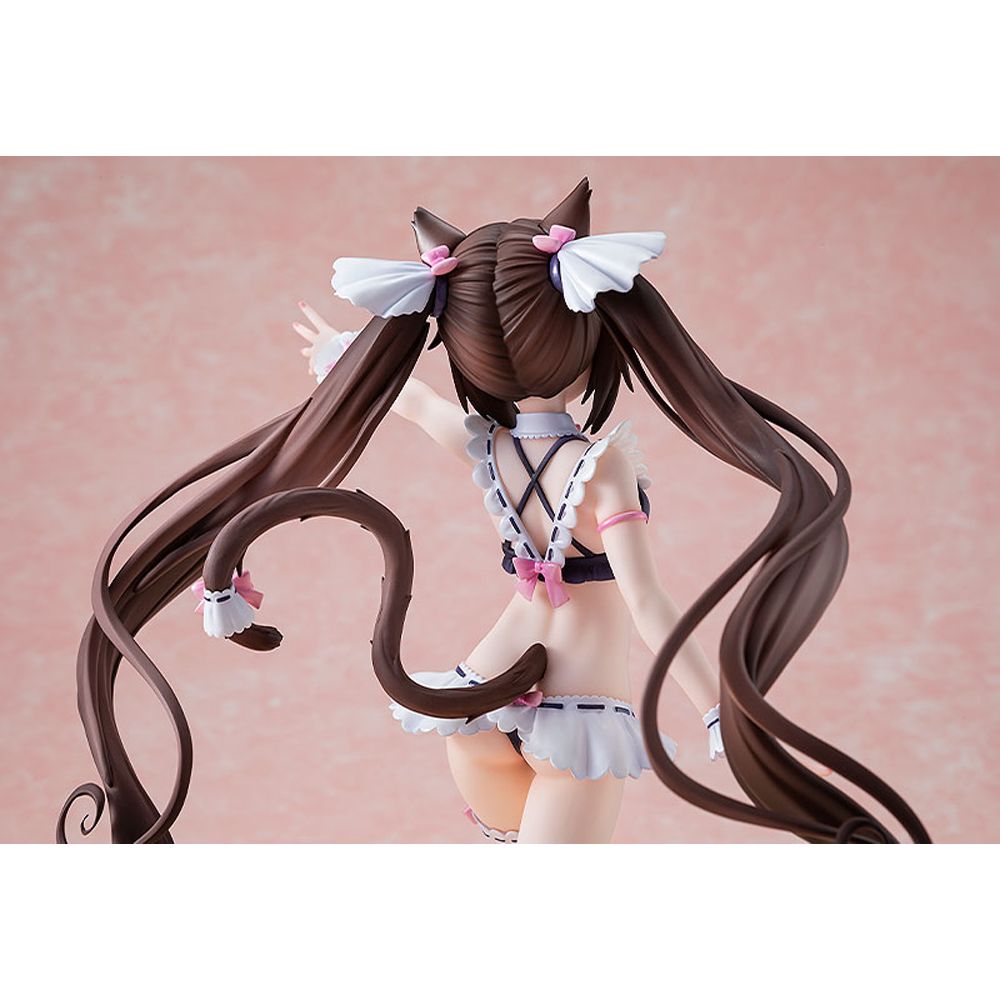 A figure of Chocola dressed in a maid-style swimsuit! From "NEKOPARA", the heartful comedy story by NEKO WORKs featuring cute catgirls, comes a scale figure of Chocola, one of the youngest twin sisters of the Minaduki catgirls, wearing a maid-style swimsuit. The figure is based on an illustration by NEKOPARA illustrator Sayori and features Chocola in a fitting energetic pose. Chocola's supple physique and flowing twintails that match her dynamic pose have been carefully captured in figure form. The base of the figure features a special design inspired by the beach. Be sure to and her to your collection and display her with Vanilla: Maid Swimsuit ver. (sold separately)!