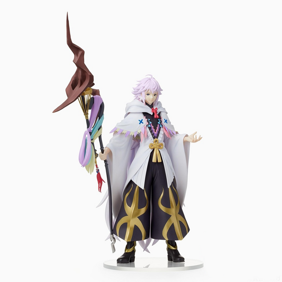 From the hit anime series Fate/Grand Order Absolute Demonic Front comes a Super Premium Figure of Merlin! This figure of Merlin stands over 11 inches tall to the top of his staff and comes with a base to keep him stable on any shelf.