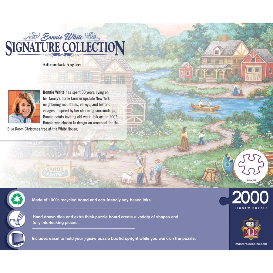 These MasterPieces 39" x 27" 2000pc Signature Series Puzzles. Puzzles with 2000 pieces or more are crafted using multiple die-cutting machines, allowing us to create large, intricate puzzles with stunning detail. Due to the complexity of the process, slight variations in alignment may occur, giving each finished puzzle its own unique character and charm—making it a truly one-of-a-kind experience for enthusiasts. To reduce their impact on our environment, the chipboard used in these puzzles is made of 100% recycled material.