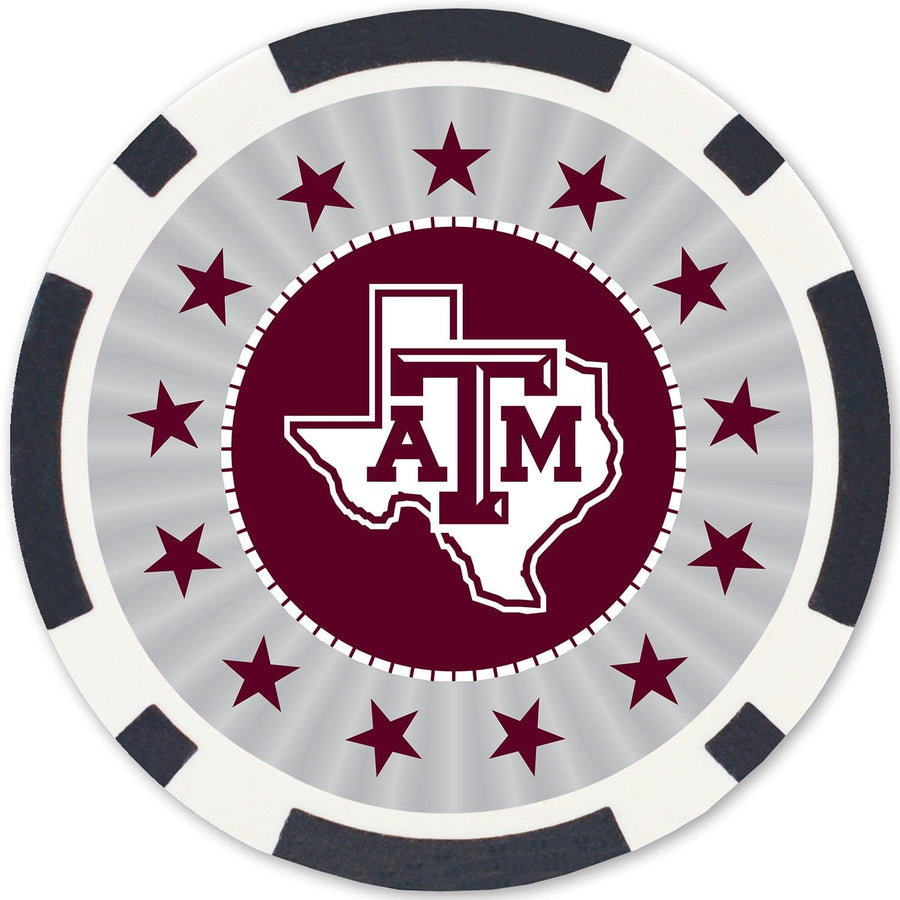 Bring the excitement of the casino to your next poker night or game day with this 100-piece set of casino style poker chips, officially licensed for Texas A&M Aggies fans. Perfect for poker set enthusiasts, these custom poker chips feature vibrant team colors and are ideal for poker party supplies, poker decorations, or as a standout piece of Texas A&M decor. Each chip is crafted for a premium feel, making them suitable for blackjack chips, gambling chips, or as part of your poker decor. The set comes in a compact package measuring 8.5 inches high, 3.27 inches wide, and 3.27 inches long, weighing 2.63 pounds, making it easy to store or transport in your favorite poker chip case. Designed for families and fans, these numbered poker chips are great for poker decorations party themes or as casino chips for your next gathering. Manufactured by Masterpieces and imported for quality, this set is a must-have for NCAA supporters looking to elevate their poker experience with authentic, team-inspired clay poker chips.
