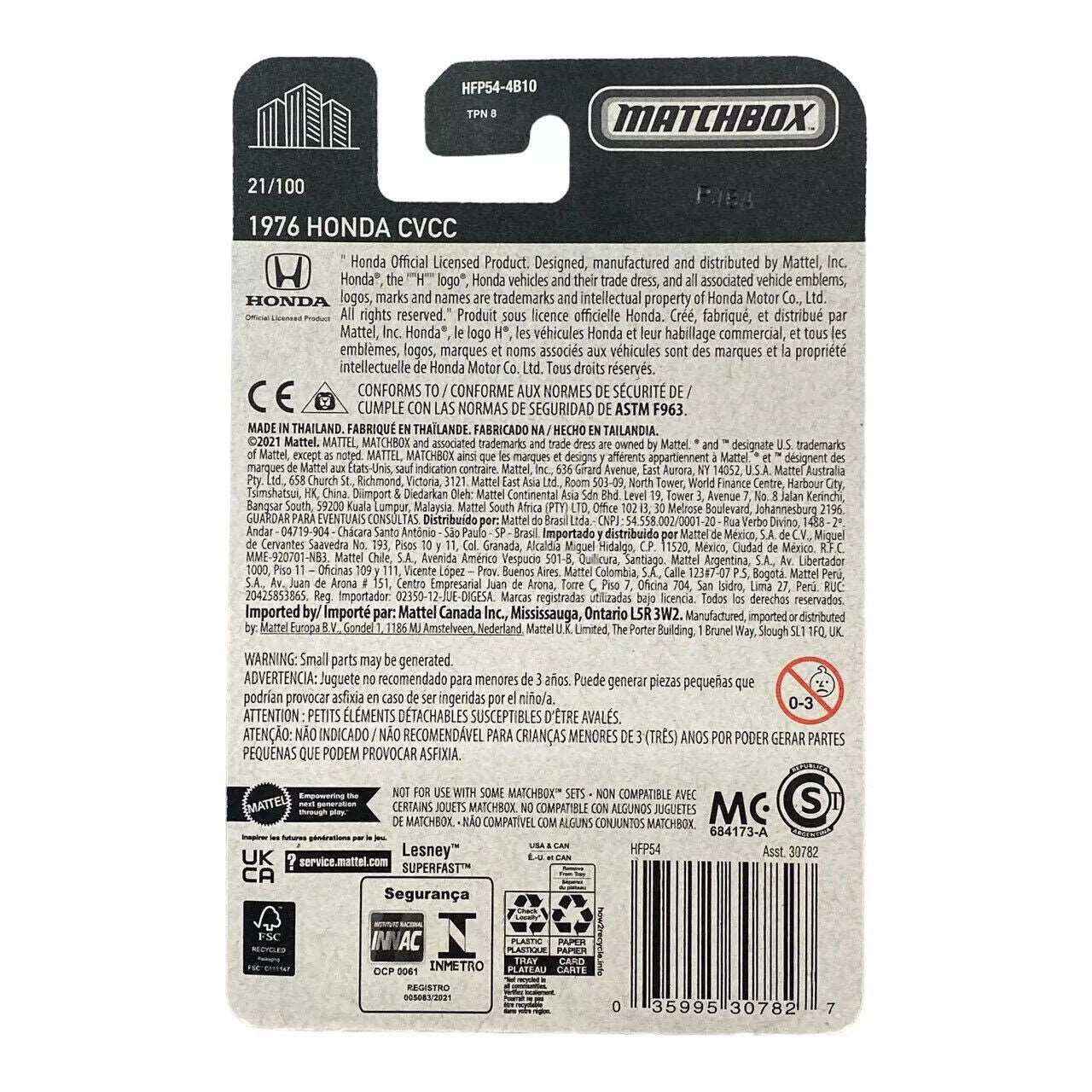 Crafted with precision, the Matchbox 1976 Honda CVCC features: