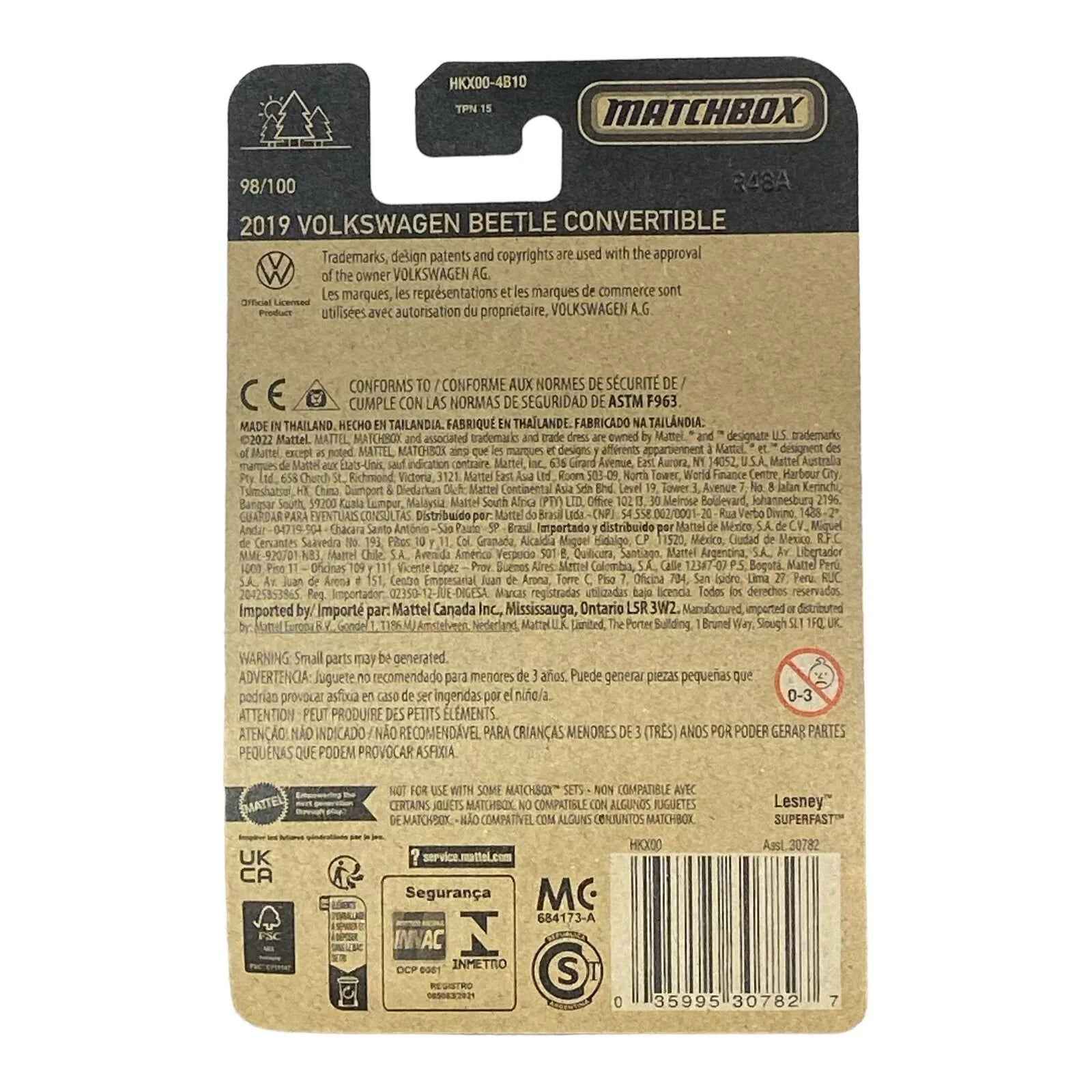 Beyond its aesthetic appeal, the Matchbox 2019 Volkswagen Beetle Convertible comes with an environmentally friendly approach, reflecting the brand's commitment to sustainability. The packaging has been designed with recycled materials wherever possible, aligning with modern eco-friendly practices that many consumers appreciate.