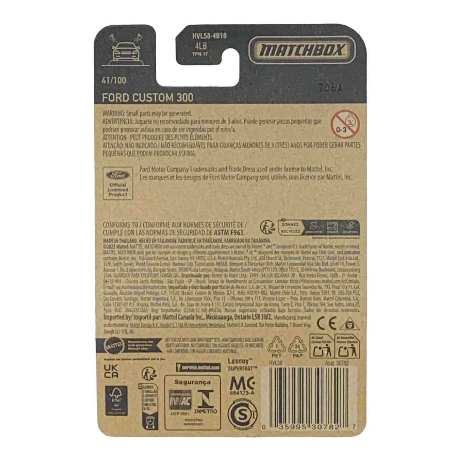 Introducing the Matchbox Ford Custom 300, a stunning addition to the Matchbox Series 41/100 collection. This exquisitely crafted die-cast model is designed for both collectors and enthusiasts alike. The Matchbox Ford Custom 300 represents classic American automotive design and unmatched craftsmanship, making it a must-have for anyone who appreciates vintage vehicles.