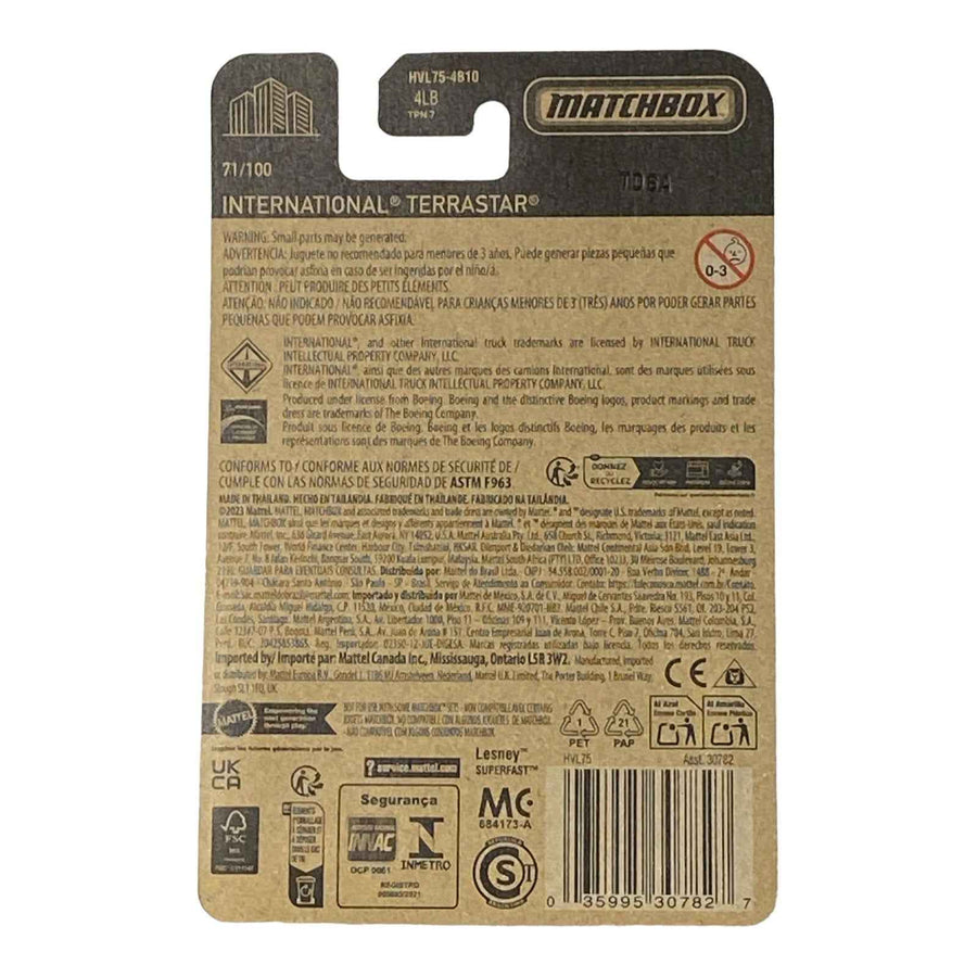 The International Terrastar serves as an excellent educational tool, allowing children to learn about emergency services and the importance of medical assistance during fire emergencies. Its size is perfect for small hands, making it suitable for young fans while still being a worthy collectible for older enthusiasts. As part of the Matchbox Series 71/100 lineup, it holds a special place among other vehicles designed for emergency response, further establishing its significance in the collection.