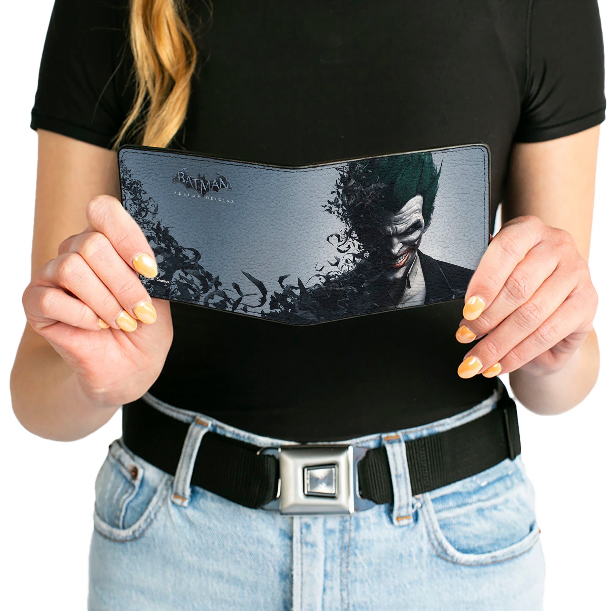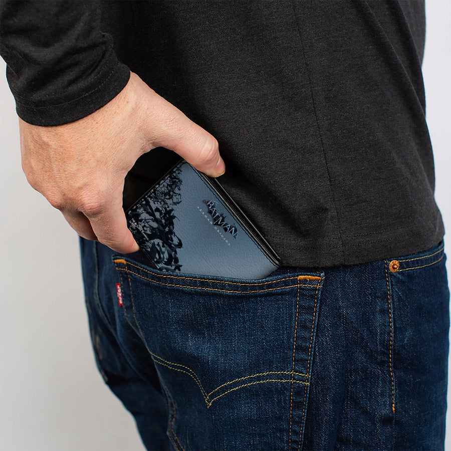 This awesome men's bi-fold wallet is made from premium vegan leather. It measures 4.0x3.5x0.5 Inches, and features the standard billfold, 5 card slots, and windowed ID holder. The logos are applied using advanced printing technologies, so the wallet will still look good after years of hard use. This product is made by Buckle-Down, Inc. and Officially Licensed by DC Comics.