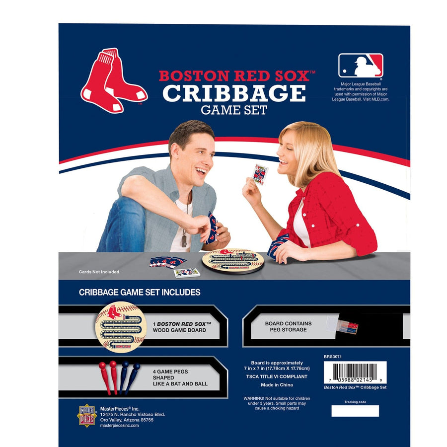 Looking for something fun and challenging to do while cheering on your Boston Red Sox? Look no further than this MasterPieces officially licensed MLB Boston Red Sox Cribbage Game Set for adults and families! This set includes a durable wood-finished cribbage game board, shaped like a football, with authentic Boston Red Sox logos. Peg your way around the board with Yardage Marker Pegs, and make runs with hand-drawn Kings, Queens, and Jacks dressed in team gear. This Cribbage Game Set is perfect for the ultimate fan of the Boston Red Sox and Cribbage.