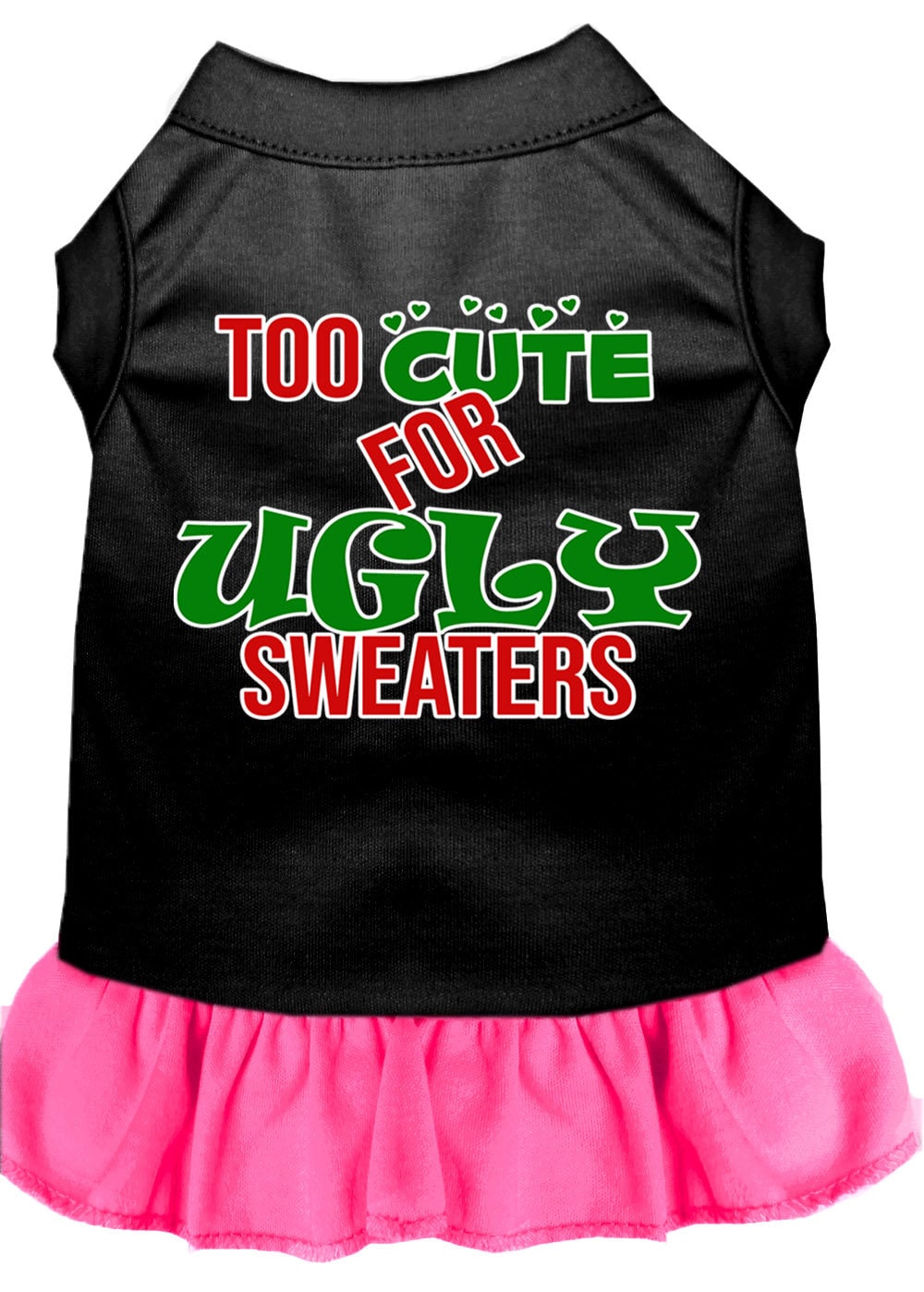 Christmas Dog Dress, Pet Dog & Cat Dress Screen Printed, "Too Cute For Ugly Sweaters"