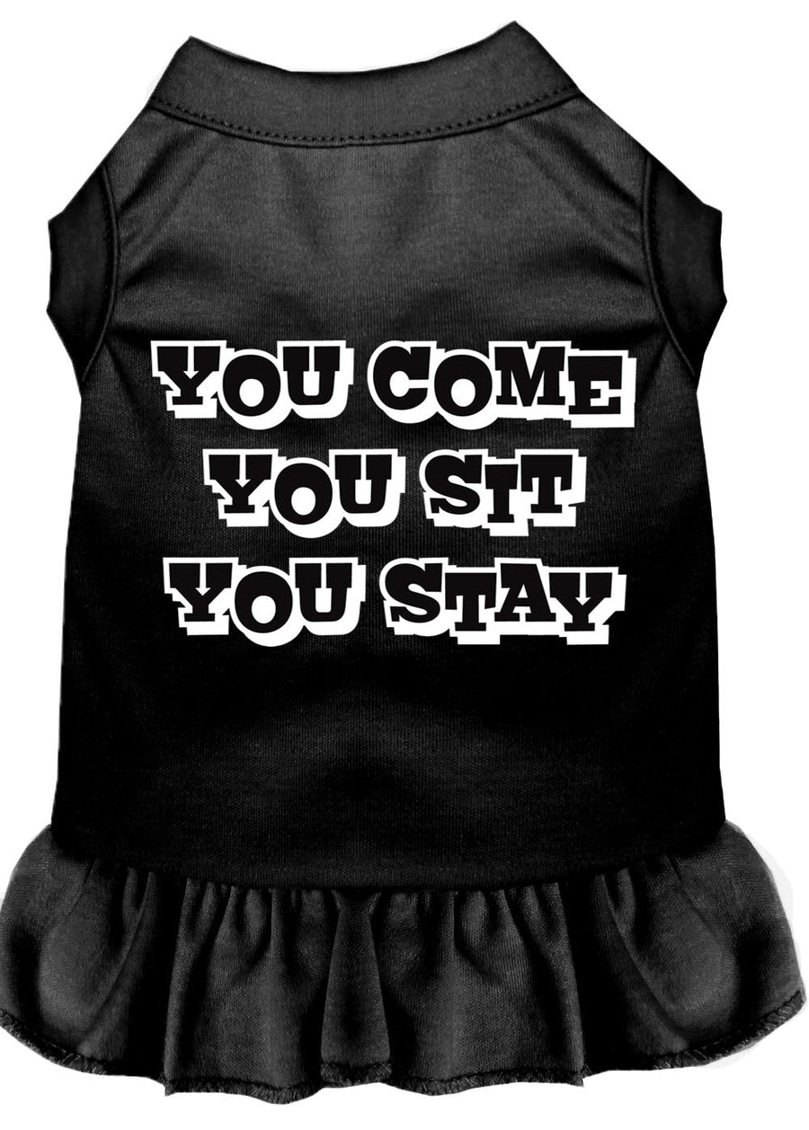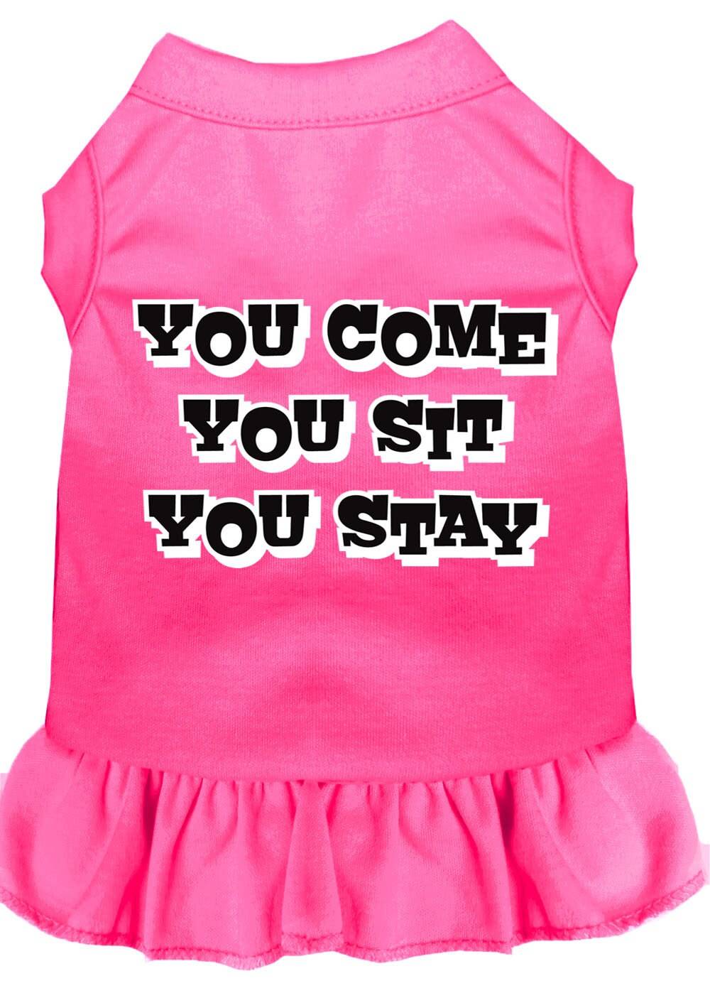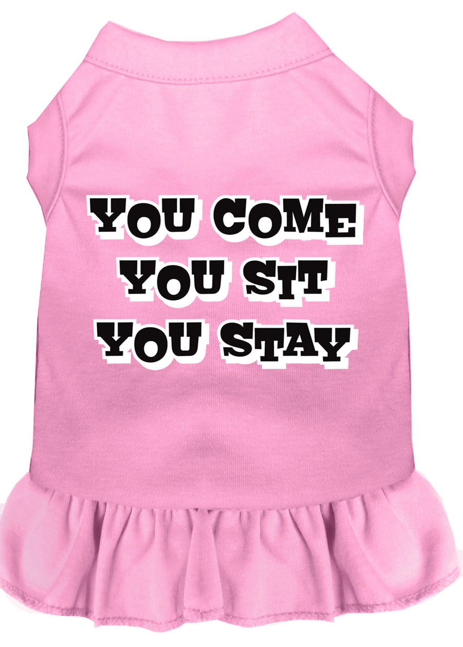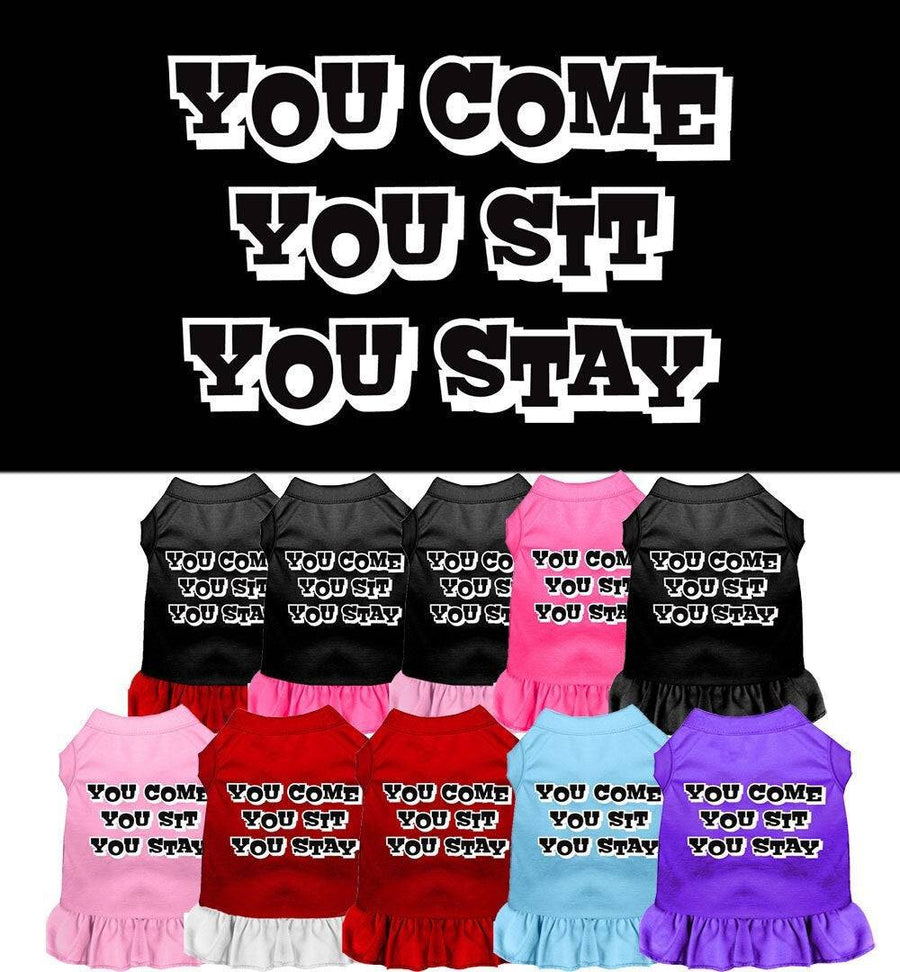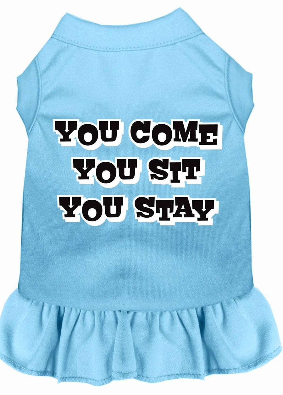 Pet Dog & Cat Dress Screen Printed, "You Come, You Sit, You Stay"