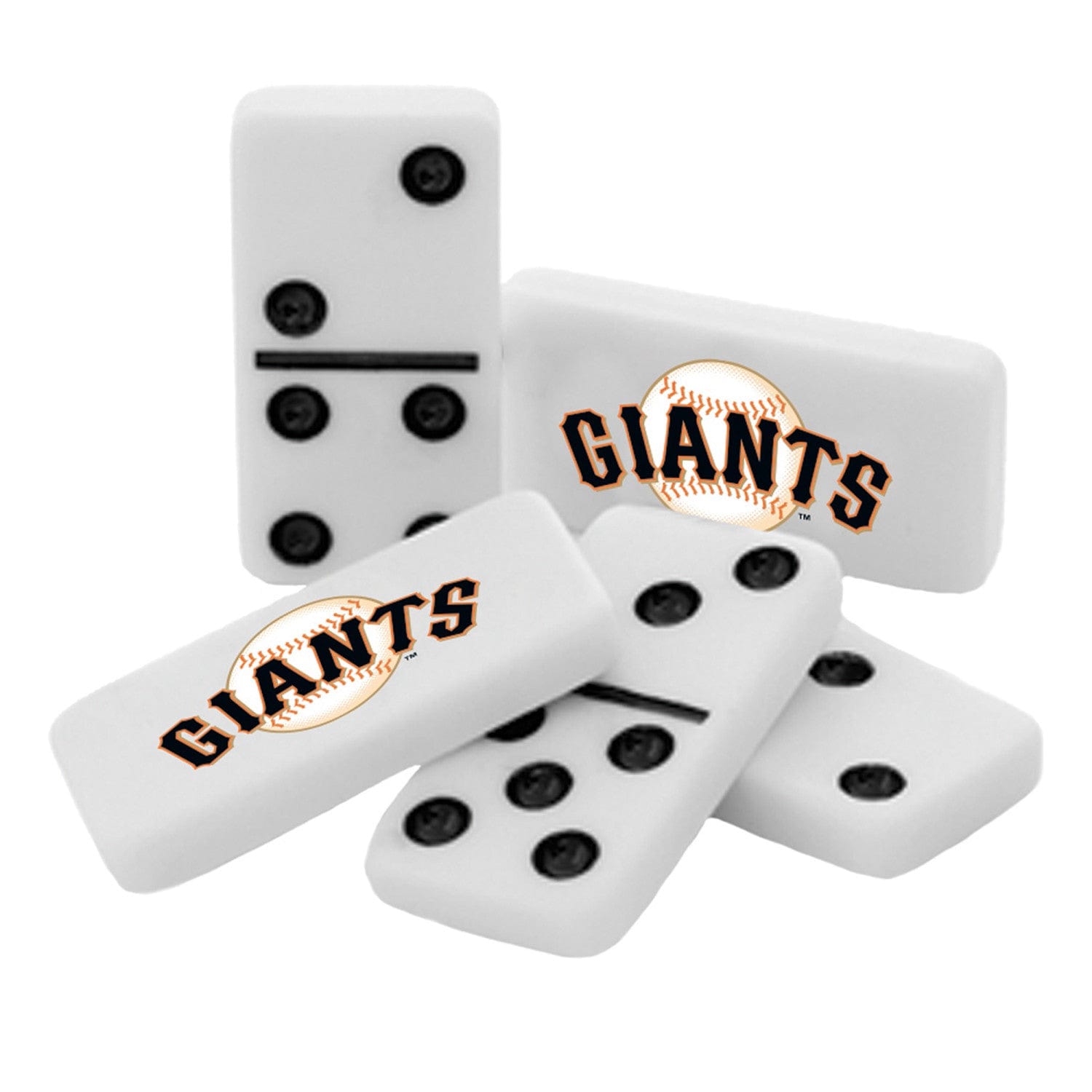 Officially licensed, MasterPieces MLB San Francisco Giants dominoes are perfect for any sports fan! This Double-Sixes San Francisco Giants Dominoes Set comes in a collectible tin box and includes 28 resin dominoes with a team logo printed on the back of each one. Dominoes Instructions are also included. This Sports Dominoes Set is perfect for all sports fans, ages 6 and up! Bring a little bit of pride home with you by purchasing this unique Dominoes Set!