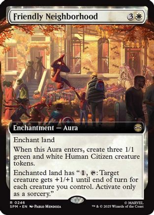 When this Aura enters, create three 1/1 green and white Human Citizen creature tokens.