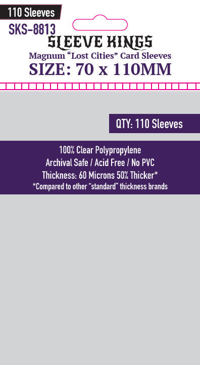 ** Note Game Titles and their intellectual property rights are © and TM of their respective rights holders, no challenge to these rights is expressed or implied. Compatibility claims only extend to the physical size of the cards in each respective game and no claim to endorsement or authorization by the respective rights holders is expressed or implied by Sleeve Kings or Imperial Publishing. Our products are compatible with the respective games only and all rights are reserved by the respective rights holders.