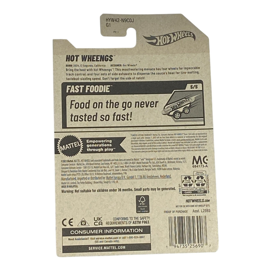 Hot Wheels Hot Wheengs - Fast Food Series 5/5 is a thrilling addition to the ever-popular Hot Wheels collection that every car enthusiast will adore. These miniature vehicles are designed with incredible detail, making them a fantastic choice for collectors and kids alike. Experience the excitement of the Fast Food Series, where every car embodies the vibrant flair of iconic fast food restaurants. Each model focused on delivering a unique interpretation of beloved fast food favorites.