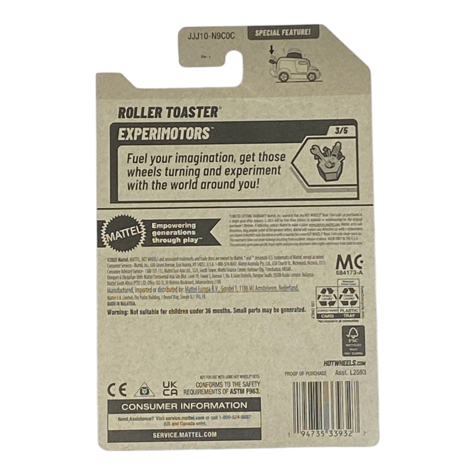 Discover the Hot Wheels Roller Toaster from the Experimotors Series 3/5 – a wildly creative diecast toy car that transforms an everyday toaster into a high-speed racer! This 1:64 scale collectible features popping toast on the roof, knob-style headlights, a power plug detail, and a functional lever wing for added fun. Perfect for Hot Wheels enthusiasts and collectors seeking unique, experimental designs in the 2026 mainline series.