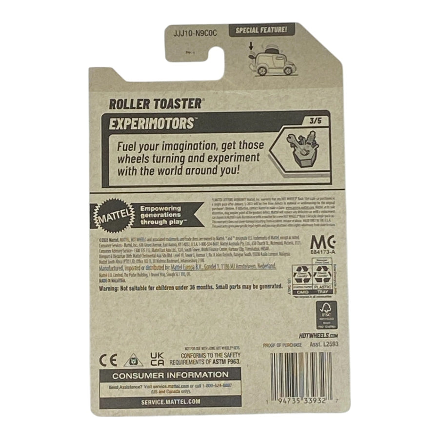 The Hot Wheels Roller Toaster Experimotors 3/5 is a fan-favorite fantasy casting blending kitchen appliance humor with racing excitement, ideal for building epic collections or thrilling track adventures.