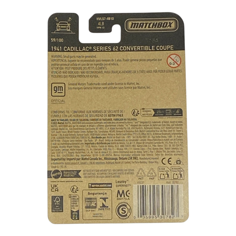 In summary, the Matchbox 1941 Cadillac Series 62 Convertible Coupe 59/100 is a must-have 2024 release capturing vintage luxury in miniature form – add this beauty to your collection now!