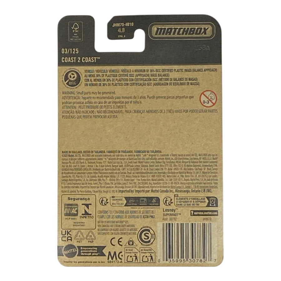 Discover the exciting Matchbox Coast 2 Coast from the 2026 Mainline Series (03/125) – a sleek, high-detail diecast speedboat perfect for collectors and young adventurers alike. This realistic coastal rescue vessel captures the thrill of ocean patrols with authentic "Coast 2 Coast" branding, making it a standout addition to any Matchbox collection in 1:64 scale.