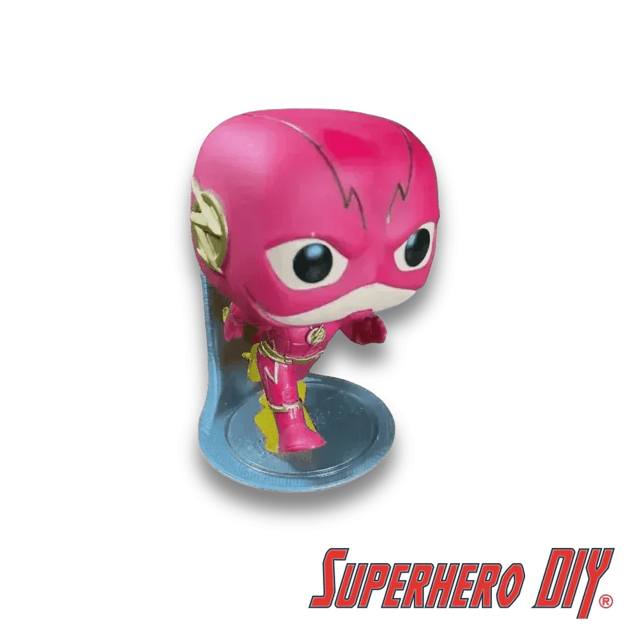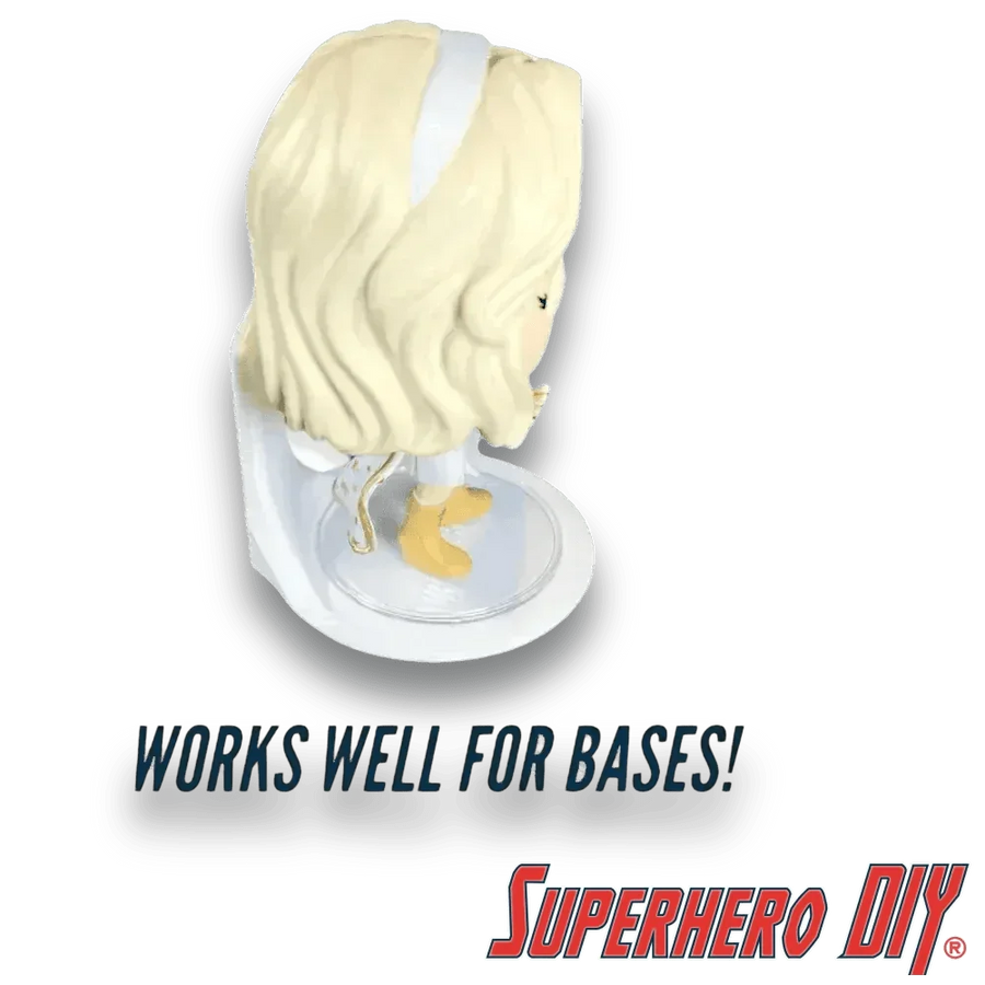 One of the first Funkos I displayed using a base stand was Wonder Woman. She's in a jumping pose, which looks really cool! However, the stand makes her slightly bigger than the other pops, and it's not ideal.