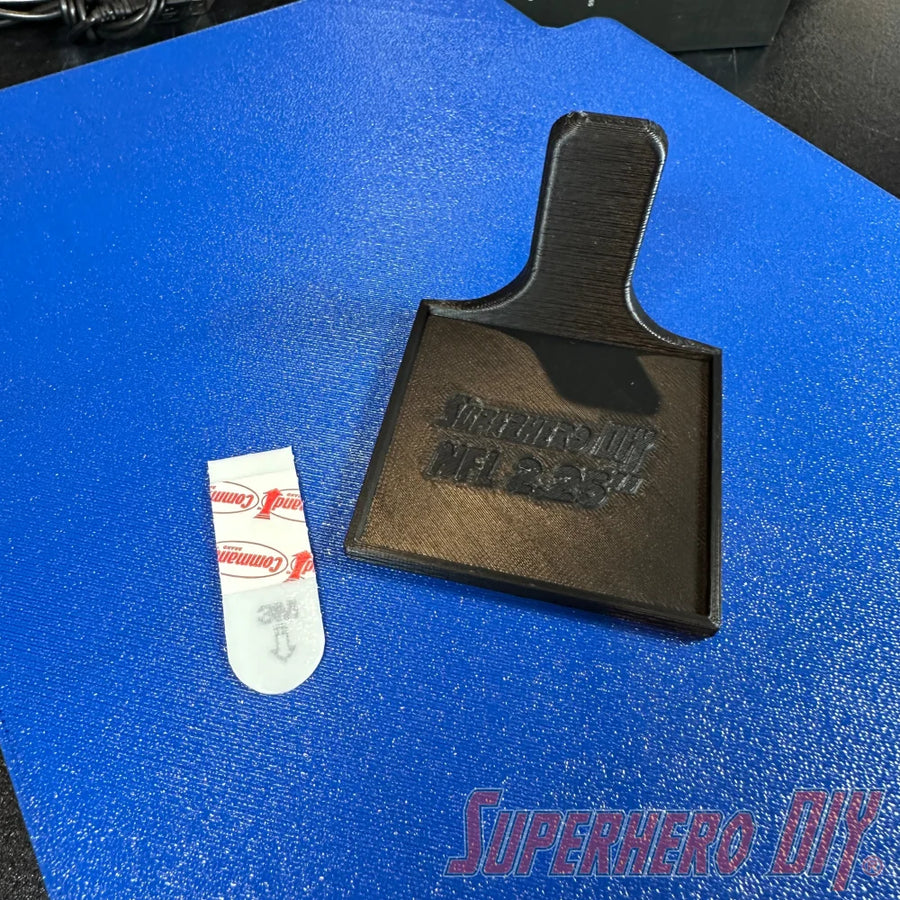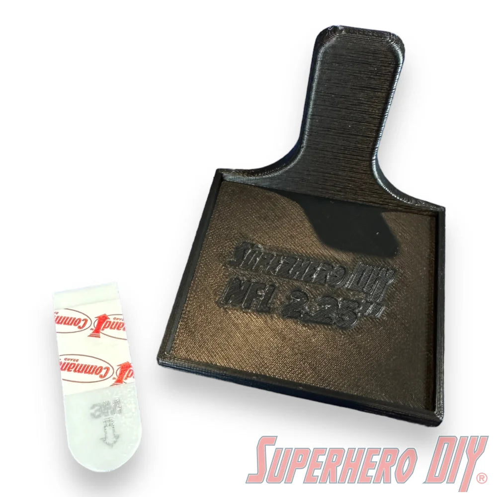 This shelf is 3D-printed in durable PLA plastic and made specifically for NFL Funkos that have the square green grass base. It is also really easy to mount on the wall! Just use the included command strip and get it displayed!