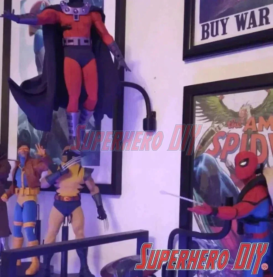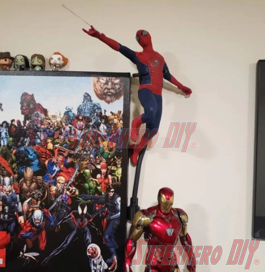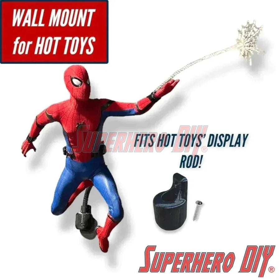 This 3D-printed Flying Figure Wall Display Mount for Hot Toys 1/6 Scale Figure is meant to fit the dynamic display rod/wire/cable that comes with Hot Toys figures who have the power of flight! Do you have a Superman figure you don't want to have attached to the base? How about Iron Man who should be taking flight? Get them mounted on the wall so they look like they're flying, already!