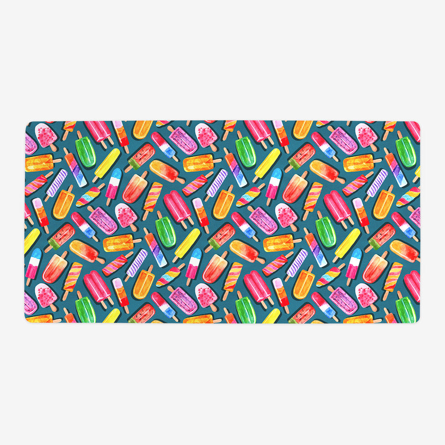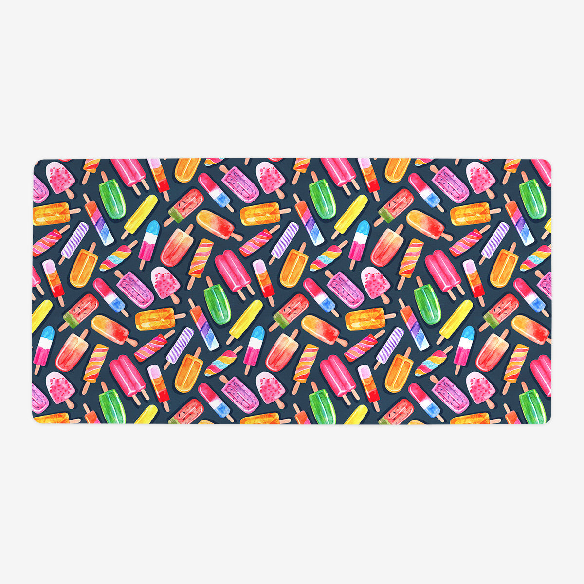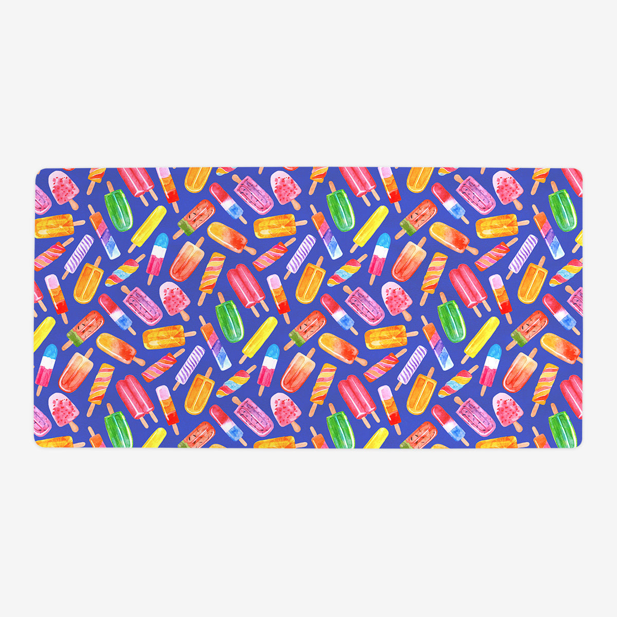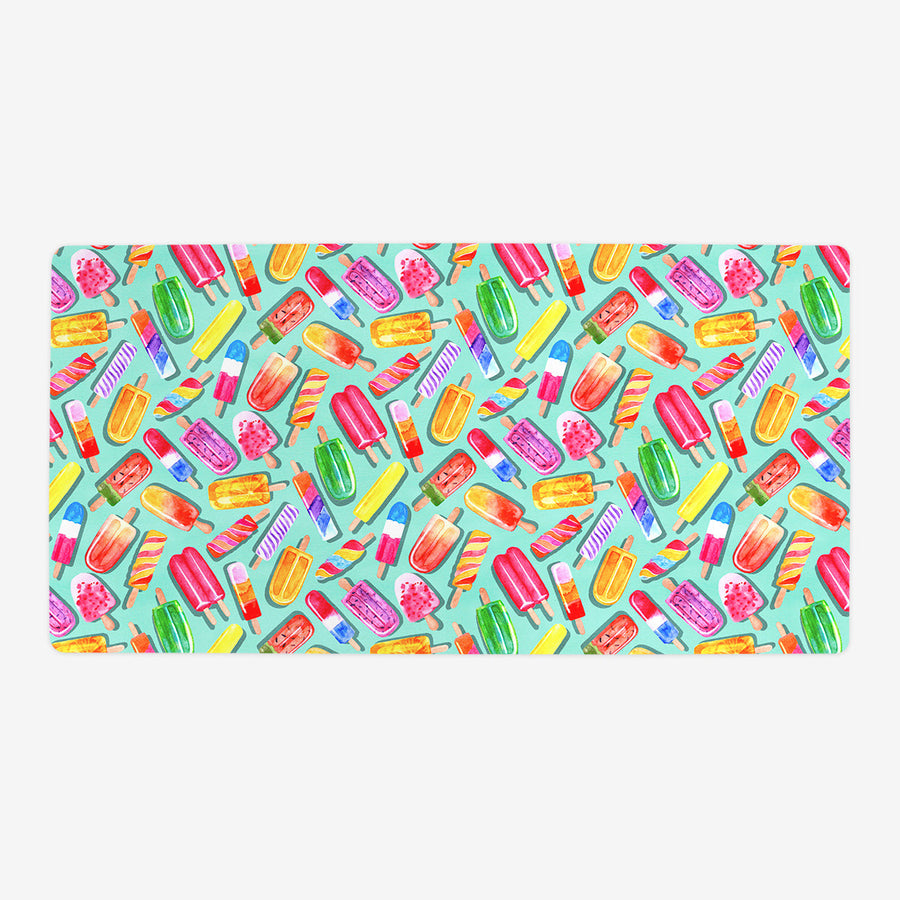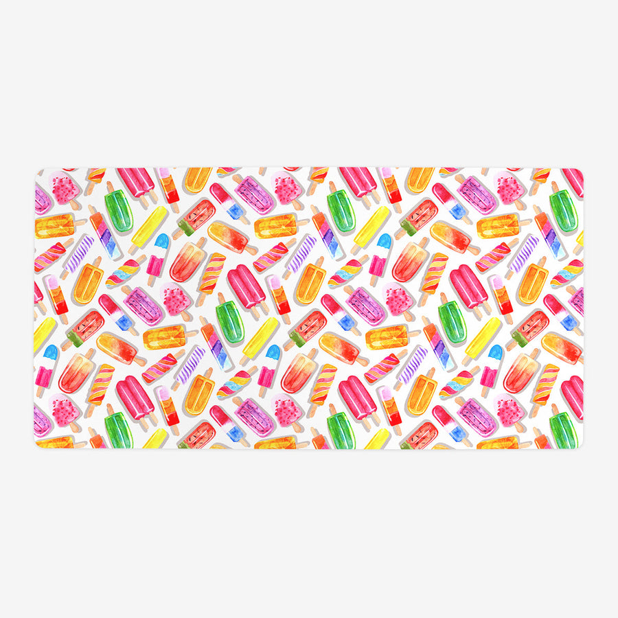 Oversized Playmat measures at 28” x 14” inches and is 1/16 of an inch thick. It’s made with a smooth cloth top and strong rubber backing.