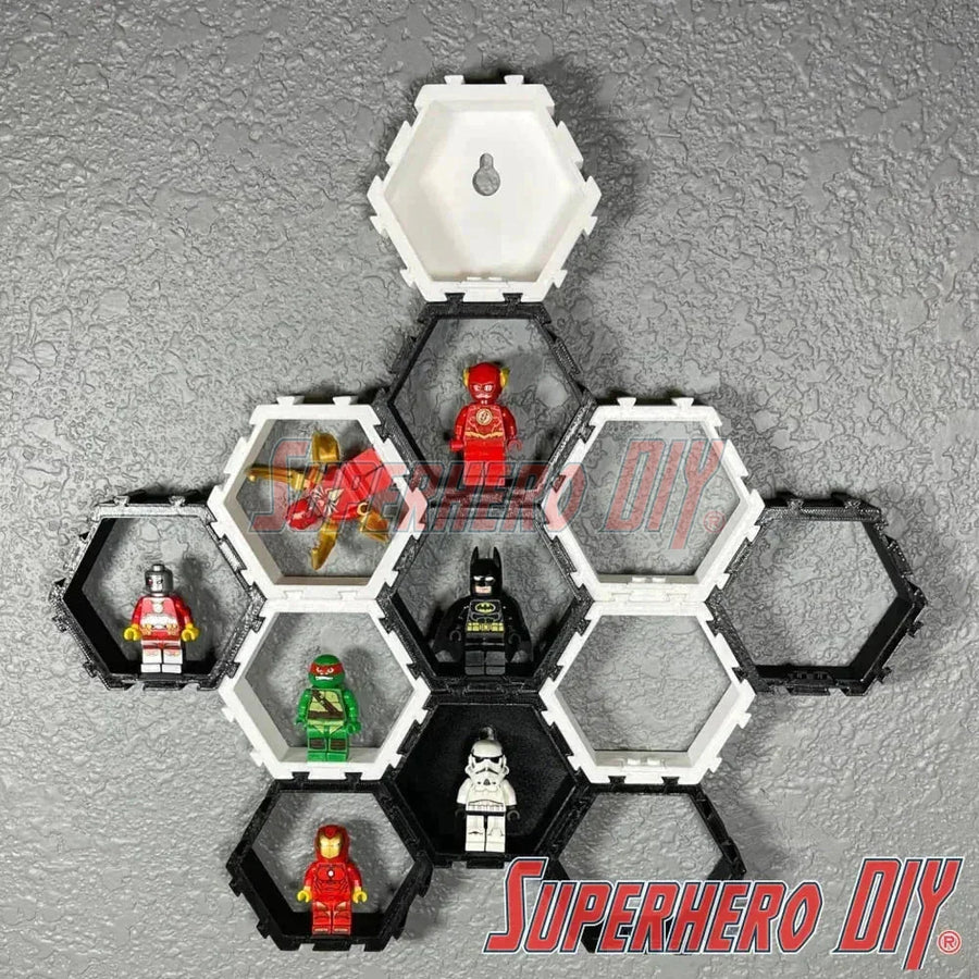 This is our DEEP Hexagon Display made to be compatible with all of your LEGO® minifigures that need a deeper cell to fit! Good for those with things on their bags, whether it's mechanical spider-legs, tentacles, jetpacks, etc!