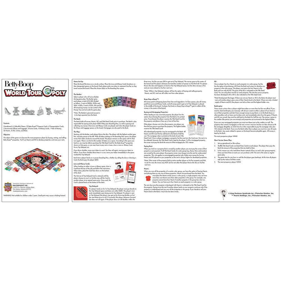 Bring the fun of classic Opoly board games to your next game night with this officially licensed Betty Boop edition, perfect for fans of Betty Boop and collectors of unique board games for adults. Featuring vibrant multicolor artwork and a sturdy metal board, this Betty Boop board game is designed for 2-4 players ages 8 and up, making it a great choice for family gatherings or parties. The game includes all components needed for play and is easy to set up with no assembly required. With a playful money genre and a nostalgic 90s Opoly board game vibe, this edition offers hours of entertainment as you buy, sell, and trade your way to victory. The compact design (10.5 x 15.5 x 2 inches) makes storage simple, while the included safety warning ensures peace of mind for parents. Ideal as a betty bop gift or for anyone who loves board games monopoly style, this edition stands out with its unique Betty Boop World Tour theme. Whether you’re searching for a betty book monopoly experience or a new twist on boardwalk Opoly card game fun, this game delivers excitement and laughter for both unisex-children and unisex-adult audiences. No batteries required.
