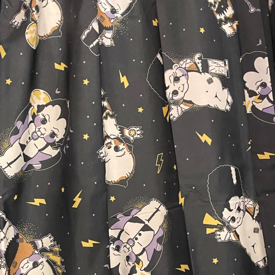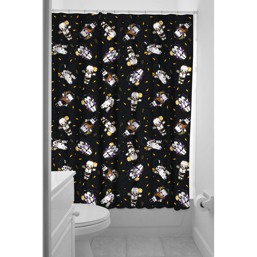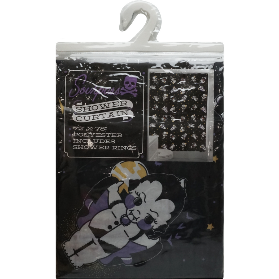 Add a playful touch of spooky-cute charm to your bathroom with the Sourpuss Kewpie Monsters Shower Curtain. Featuring Frankenstein, Mrs. Frankenstein, Dracula, and a Werewolf reimagined as adorable Kewpie-style characters, this curtain brings gothic whimsy to your daily routine.