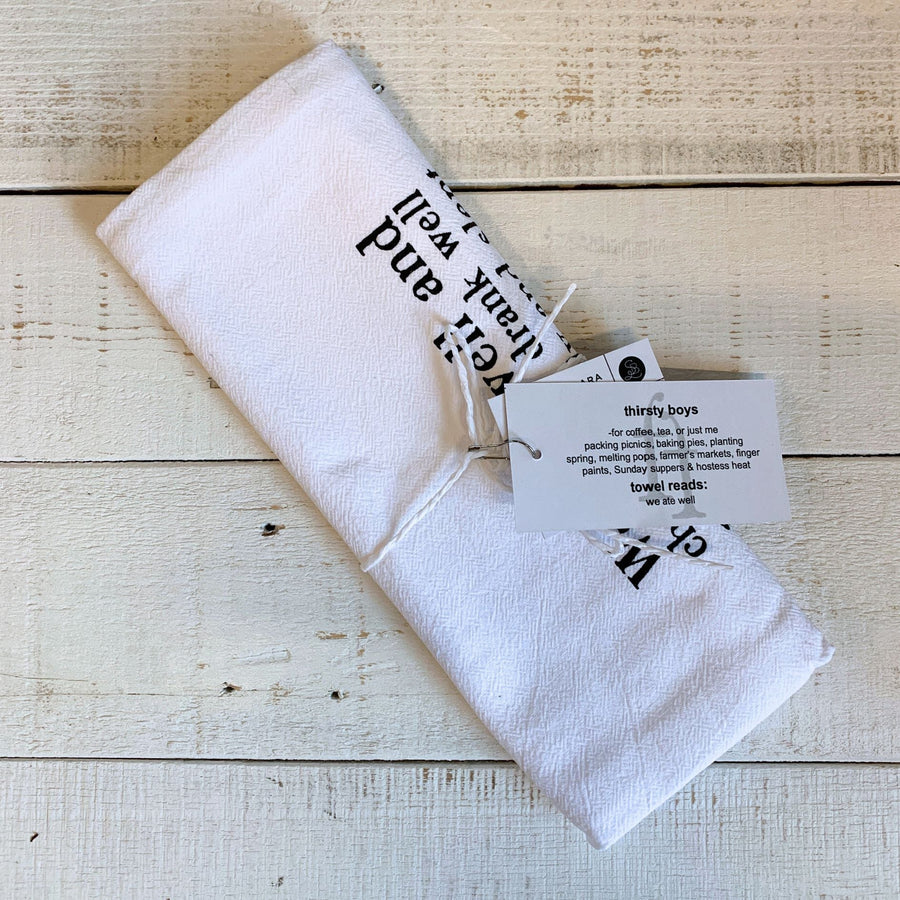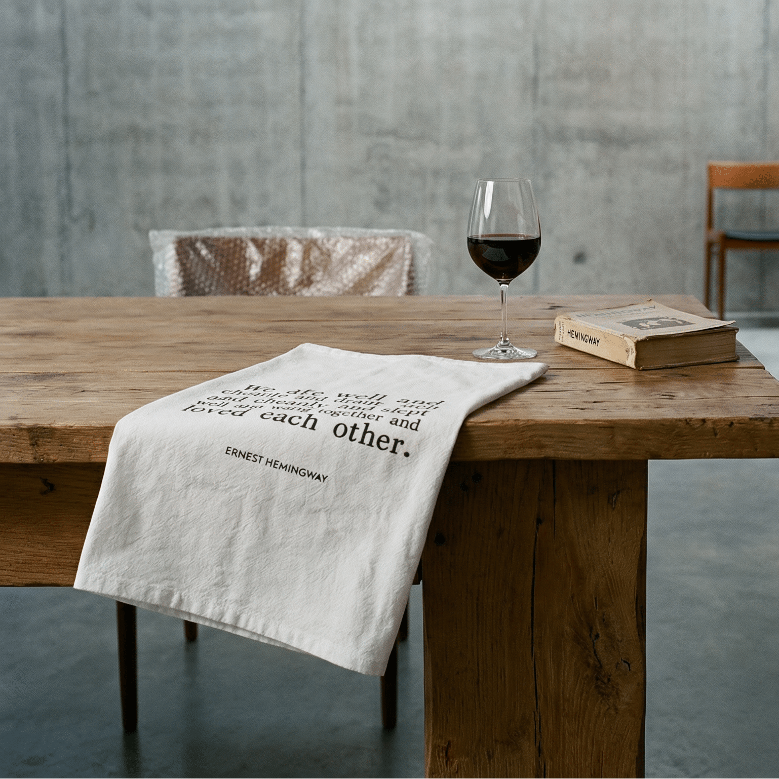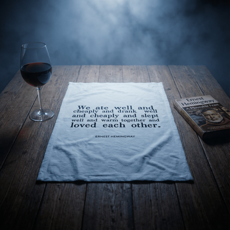 Wrap your hands in luxury with the Hemingway Quote "We Ate Well and Loved Each Other" Dish Towel, a 30" x 30" cotton flour sack kitchen towel featuring Ernest Hemingway's classic words. This absorbent towel is perfect for wiping counters, drying dishes, or gifting to your favorite foodie friend. 🎁🍴 Enjoy the softness and absorbency of this solid white towel, designed for everyday use in the kitchen or bathroom. The black lettering adds a touch of literary charm to your home decor, making it a unique and thoughtful gift for book lovers and cooks alike. 📚🎁