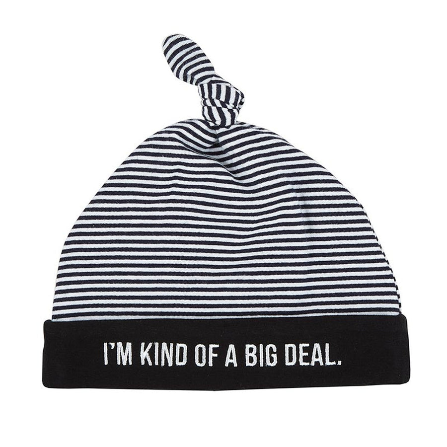 Wrap up your little social media star in style with the 'I'm Kind Of A Big Deal' knit hat, perfect for babies aged 6-12 months. The black striped cap with white embroidered lettering is sure to make them stand out at any event or playdate. Makes a thoughtful gift for trendy parents looking to make a statement with their little one's wardrobe. Show off your baby's personality with the 'I'm Kind Of A Big Deal' knit hat from Creative Brands. Crafted from a blend of cotton and spandex, this black and white striped cap is the perfect accessory for babies aged 6-12 months. Whether they're headed to a party or just hanging out at home, this hat is sure to make them the center of attention. Great for gifting to new parents who love to dress their little ones in unique and stylish pieces.