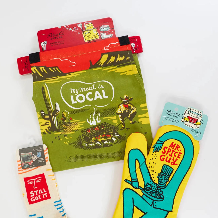 - GIVE BACK: One percent of the sale of Blue Q aprons is donated to hunger relief programs throughout the world.