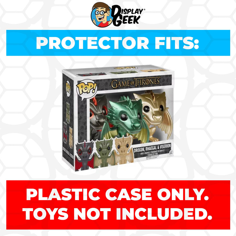 Plastic Pop Protector Compatible with 3 Pack Drogon, Rhaegal & Viserion Metallic Funko Pop