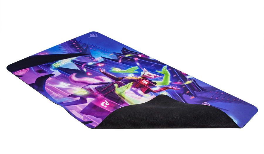 Playmats feature popular Magic: The Gathering artwork. Made with a soft fabric top to reduce damage to cards during play and a non-slip rubber backing to keep the playmat from shifting during use, playmats enhance the gameplay experience. With dimensions of approximately 24 in. x 13.5 in., a playmat also makes an excellent oversize mousepad for home or office.