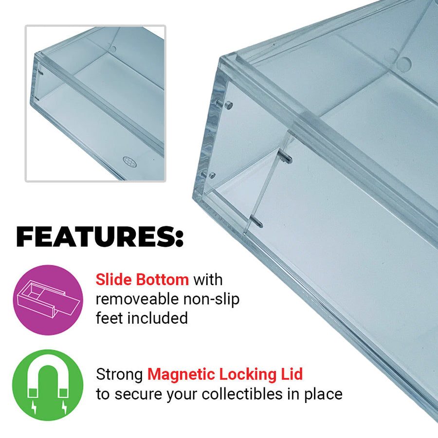 Slide Bottom Magnetic Locking Lid created by collectors to secure your collectibles.