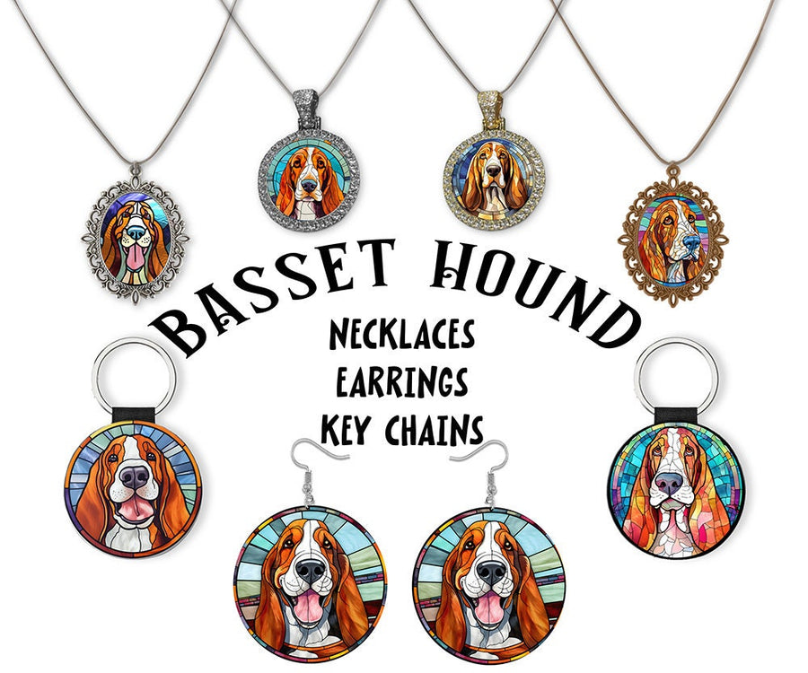 Dog Breed Jewelry Stained Glass Style, "Basset Hound"