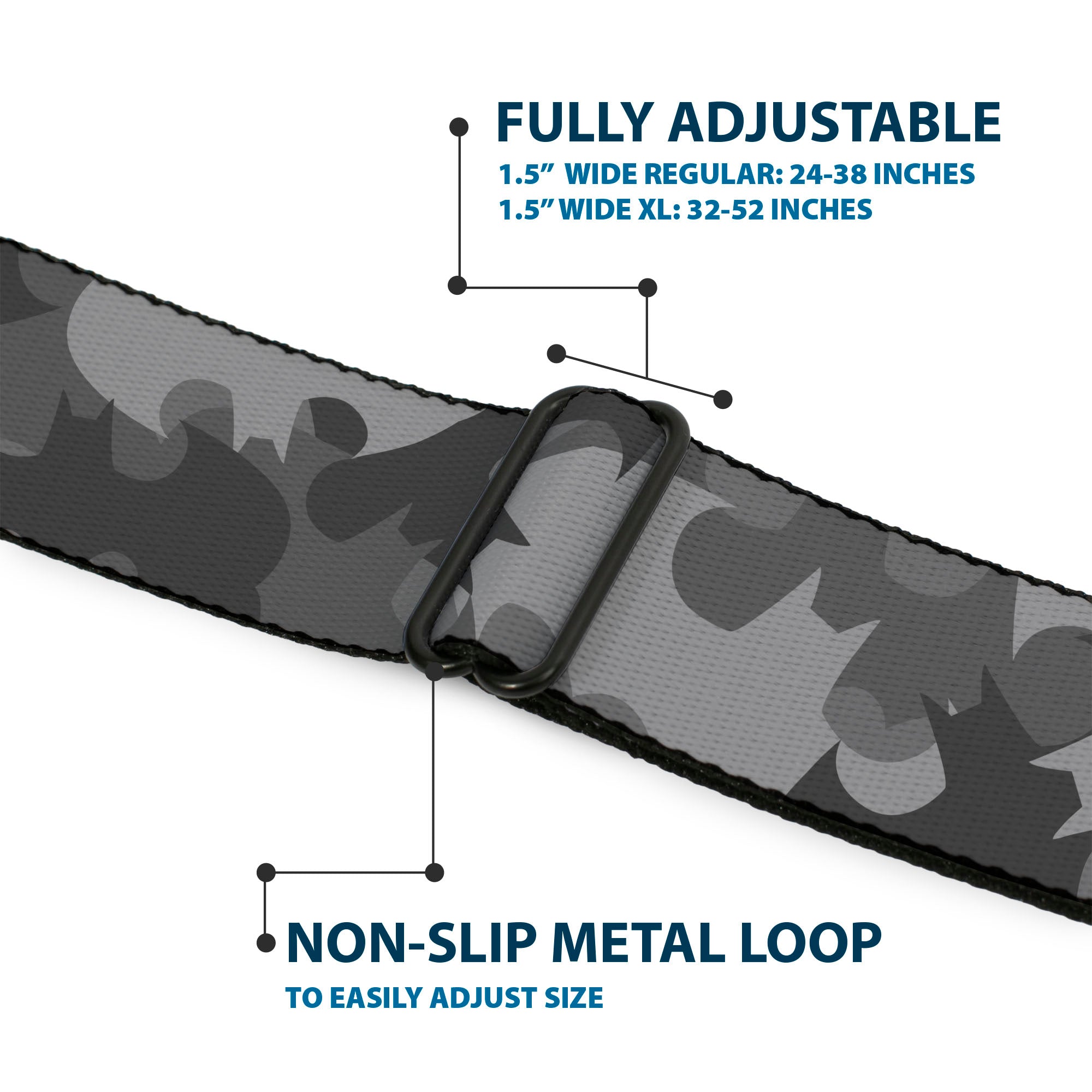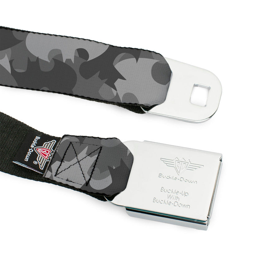 Batman Full Color Black Silver Black Seatbelt Belt - Bat Signal Stacked Black/Grays Webbing